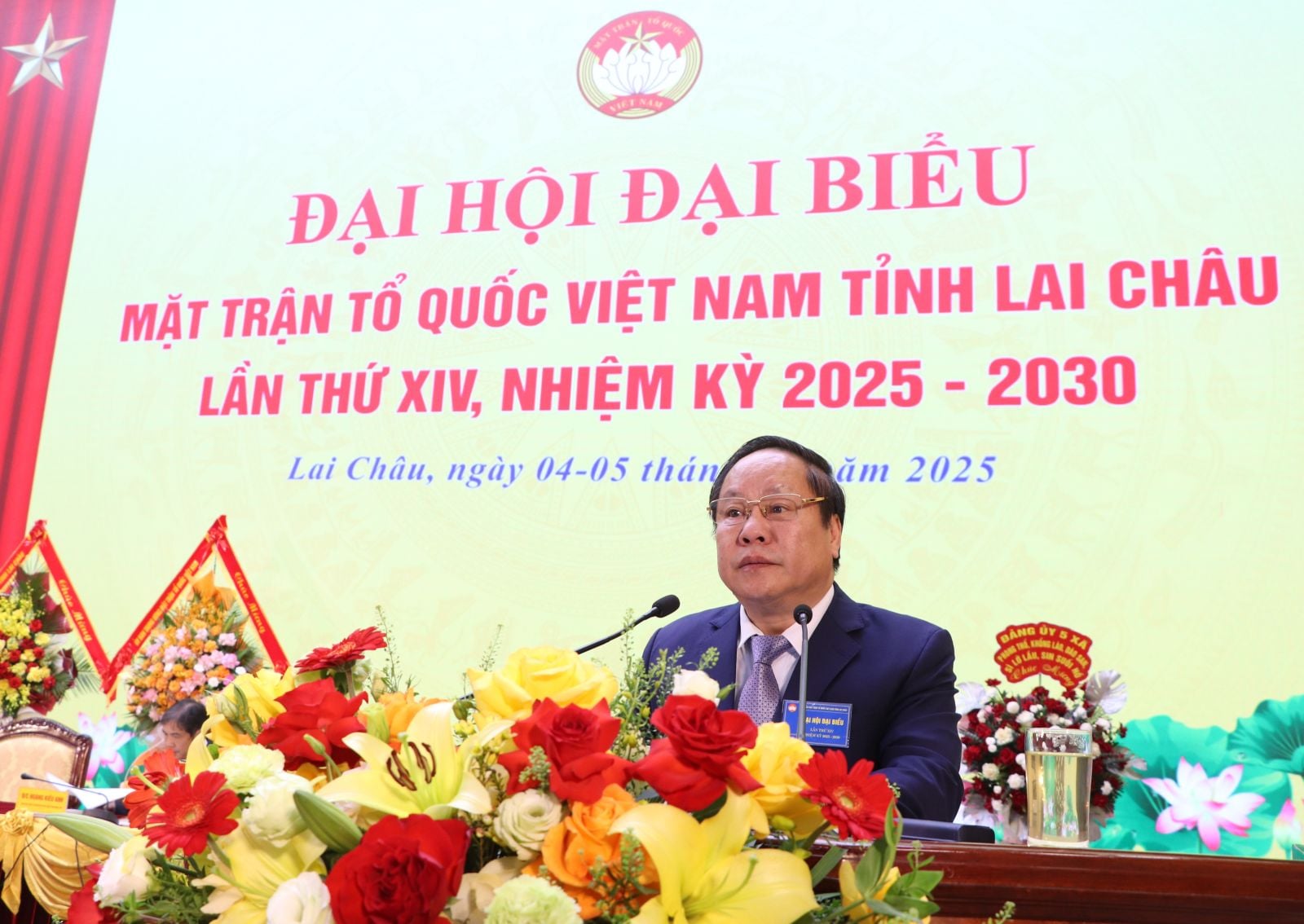 នៅមហាសន្និបាត តំណាងគណៈកម្មាធិការប្រជាជនខេត្ត Lai Chau បានរាយការណ៍អំពីស្ថានភាពសេដ្ឋកិច្ចសង្គមក្នុងតំបន់ និងការងារសម្របសម្រួលជាមួយគណៈកម្មាធិការរណសិរ្សមាតុភូមិវៀតណាមខេត្តក្នុងរយៈពេលកន្លងមក។
