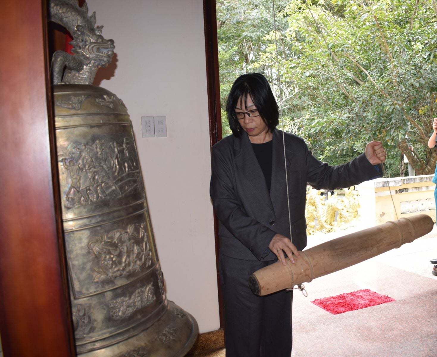 អនុប្រធានគណៈកម្មាធិការប្រជាជនខេត្ត Nguyen Thi Thanh Lich ធ្វើពិធីសូត្រមន្តនៅសាលធំនៃគេហដ្ឋានរំលឹកវិញ្ញាណក្ខ័ន្ធនៅតំបន់ប្រវត្តិសាស្ត្រនៃមូលដ្ឋានបដិវត្តន៍ភូមិភាគទី១០។