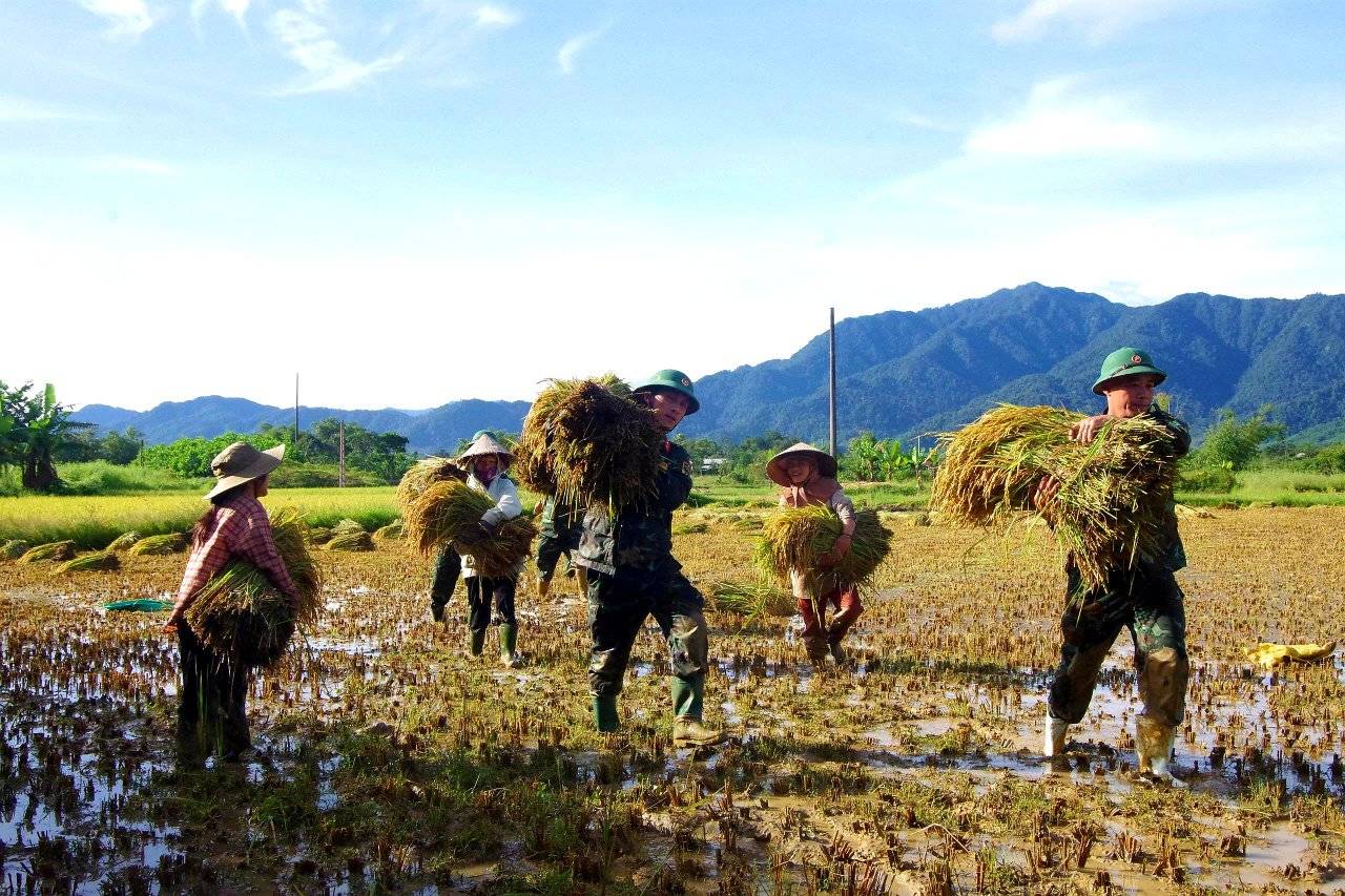 មន្ត្រី​និង​យោធិន​សេដ្ឋកិច្ច​-​យោធភូមិភាគ​ទី​៩២ និង​ប្រជាជន​ឃុំ A Luoi 4 បាន​ច្រូតកាត់​ស្រូវ​ដែល​ស្រុត​ក្រោយ​ខ្យល់ព្យុះ។