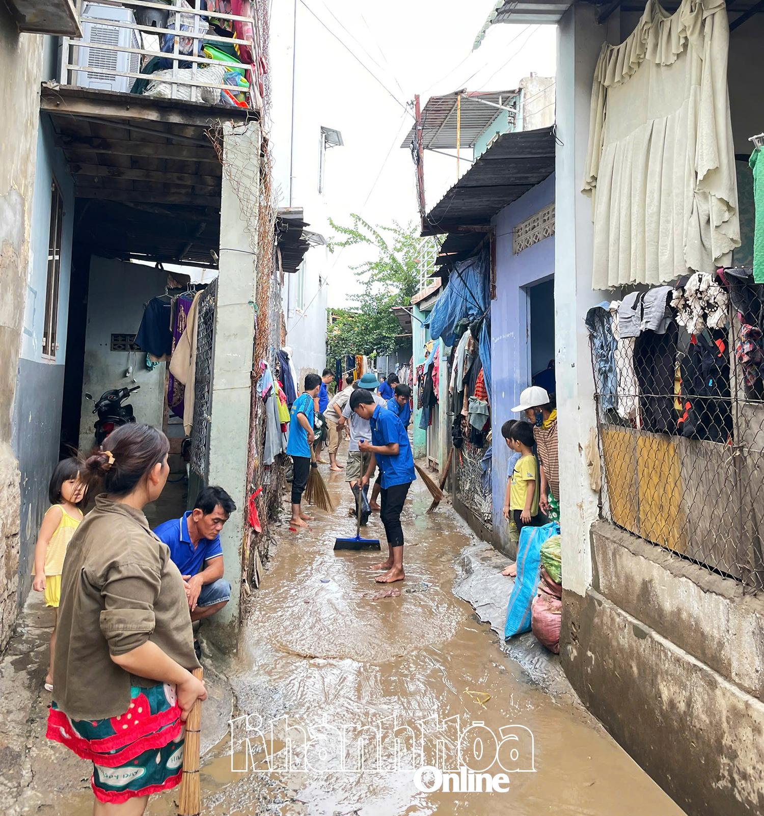 | សមាជិកសហជីពយុវជនសង្កាត់ផាន់រាំង ជួយសម្អាតផ្ទះ និងផ្លូវក្រោយទឹកជំនន់។ |