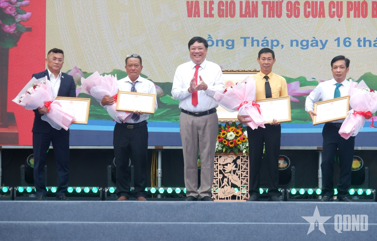 | ថ្នាក់ដឹកនាំខេត្តដុងថាបបានសរសើរអង្គភាពដែលបានឧបត្ថម្ភដល់ការជួសជុល និងអភិរក្សទីតាំងប្រវត្តិសាស្ត្រនេះ។ |