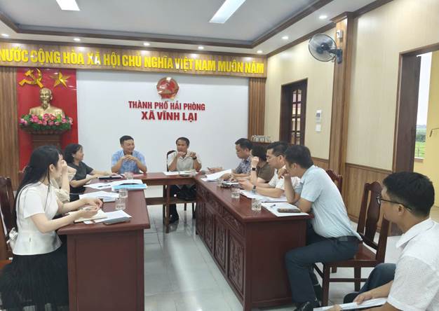 លោក Nguyen Hoang Long សមាជិកគណៈកម្មាធិការបក្សទីក្រុង ប្រធានមន្ទីរឧស្សាហកម្ម និងពាណិជ្ជកម្មបានធ្វើការជាមួយគណៈកម្មាធិការប្រជាជនឃុំ Vinh Lai