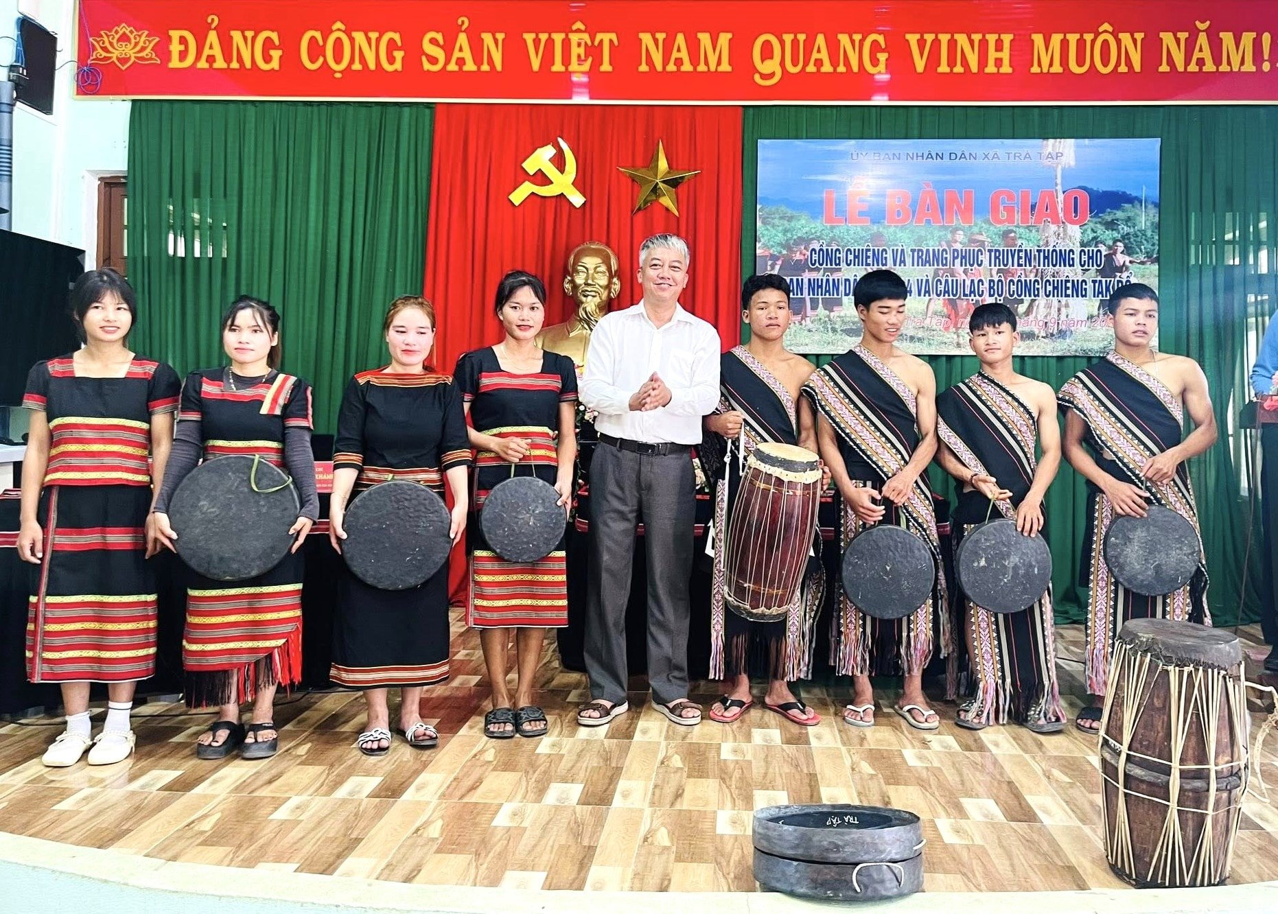 នៅខែកញ្ញា ឆ្នាំ២០២៥ គណៈកម្មាធិការប្រជាជនឃុំត្រាបបានរៀបចំពិធីប្រគល់គង និងសំលៀកបំពាក់ប្រពៃណីដល់គណៈកម្មាធិការប្រជាជនភូមិ៤ និងក្លឹបគងរបស់ភូមិតាកៅ (ភូមិ៦)។ តាមនោះ ក្រុមគងទាំងពីរនេះបានទទួលឧបករណ៍ភ្លេងប្រពៃណីចំនួនពីរឈុត រួមមាន ឃ្មោះ ស្គរ និងសំលៀកបំពាក់ប្រពៃណី ៣៦ ឈុតរបស់ជនជាតិ Ca Dong និង Xo Dang។ បន្ទាប់ពីទទួលបានហើយ ក្រុមគងទាំងពីរបានប្រើប្រាស់វាសម្រាប់ការសម្តែងវប្បធម៌គង របាំតាំង ទុងដាដា… ដើម្បីបម្រើភ្ញៀវទេសចរណ៍។