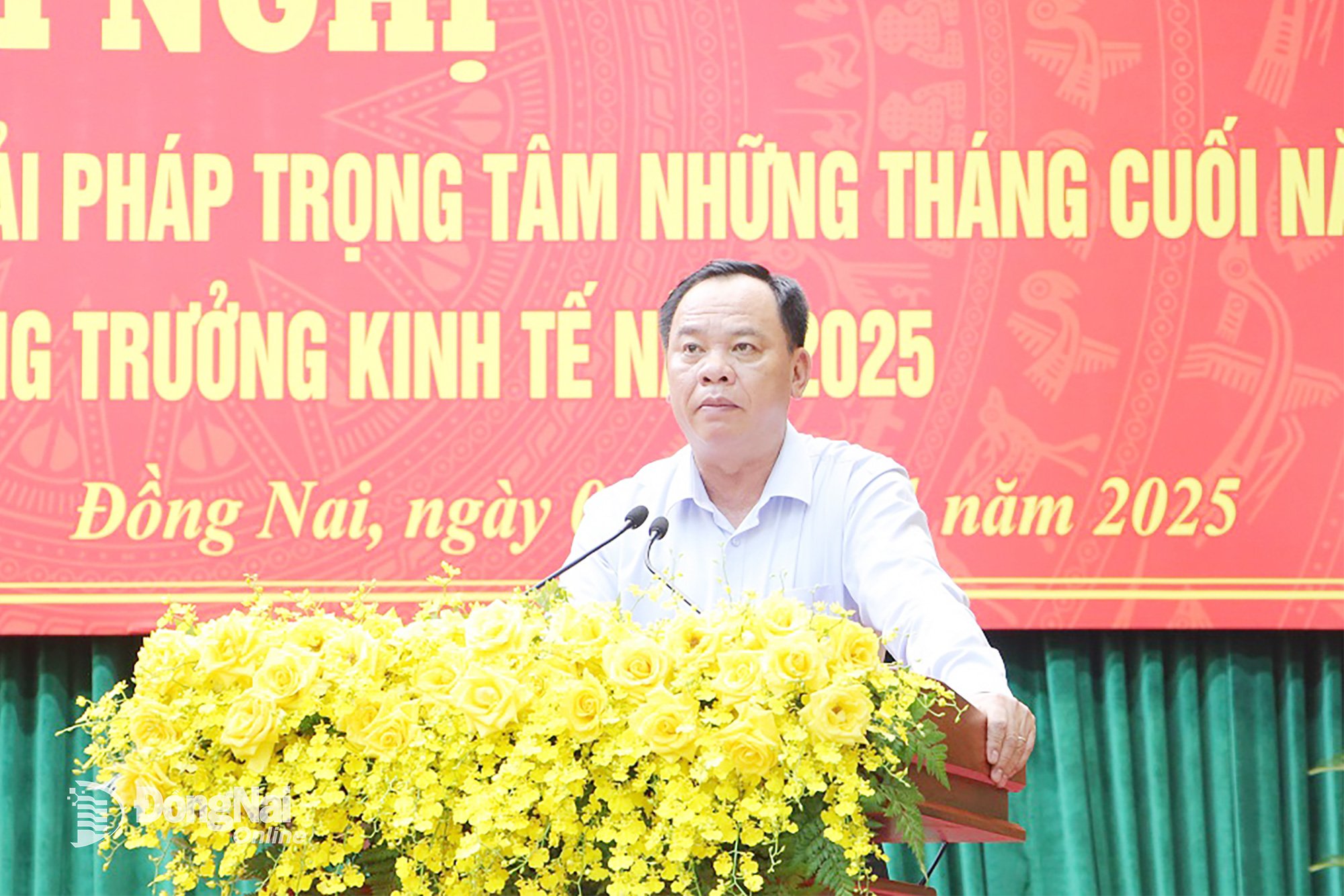 | សមមិត្ត Vo Tan Duc លេខារងគណៈកម្មាធិការបក្សខេត្ត ប្រធានគណៈកម្មាធិការប្រជាជនខេត្ត Dong Nai ថ្លែងមតិក្នុងសន្និសីទ។ រូបថត៖ Pham Tung |