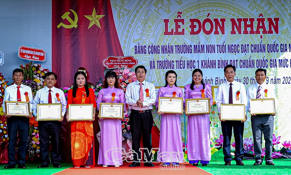 ក្នុងឱកាសនេះ គណៈកម្មាធិការប្រជាជនខេត្ត Ca Mau បានប្រគល់ប័ណ្ណសរសើរដល់សមូហភាពចំនួន ៤ នាក់ និងបុគ្គល ៨ នាក់ដែលមានស្នាដៃឆ្នើមក្នុងការរួមចំណែកកសាងសាលាស្តង់ដារជាតិចំនួន ២ ។