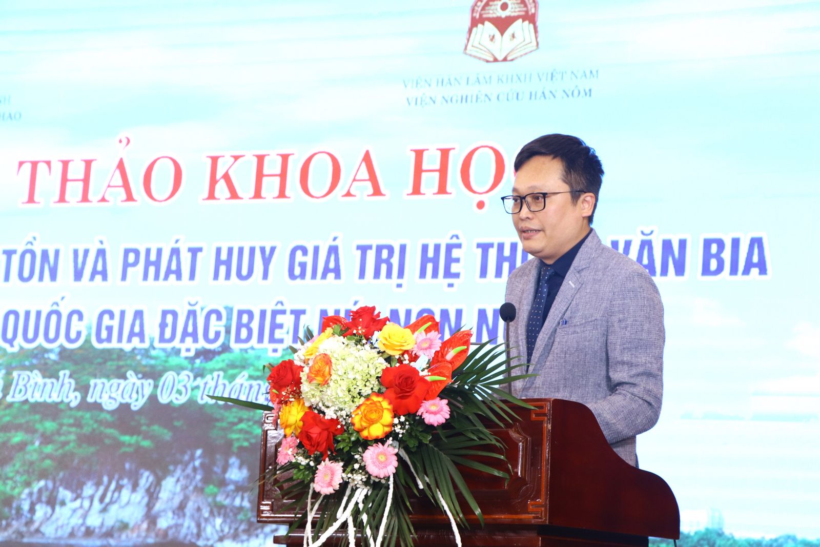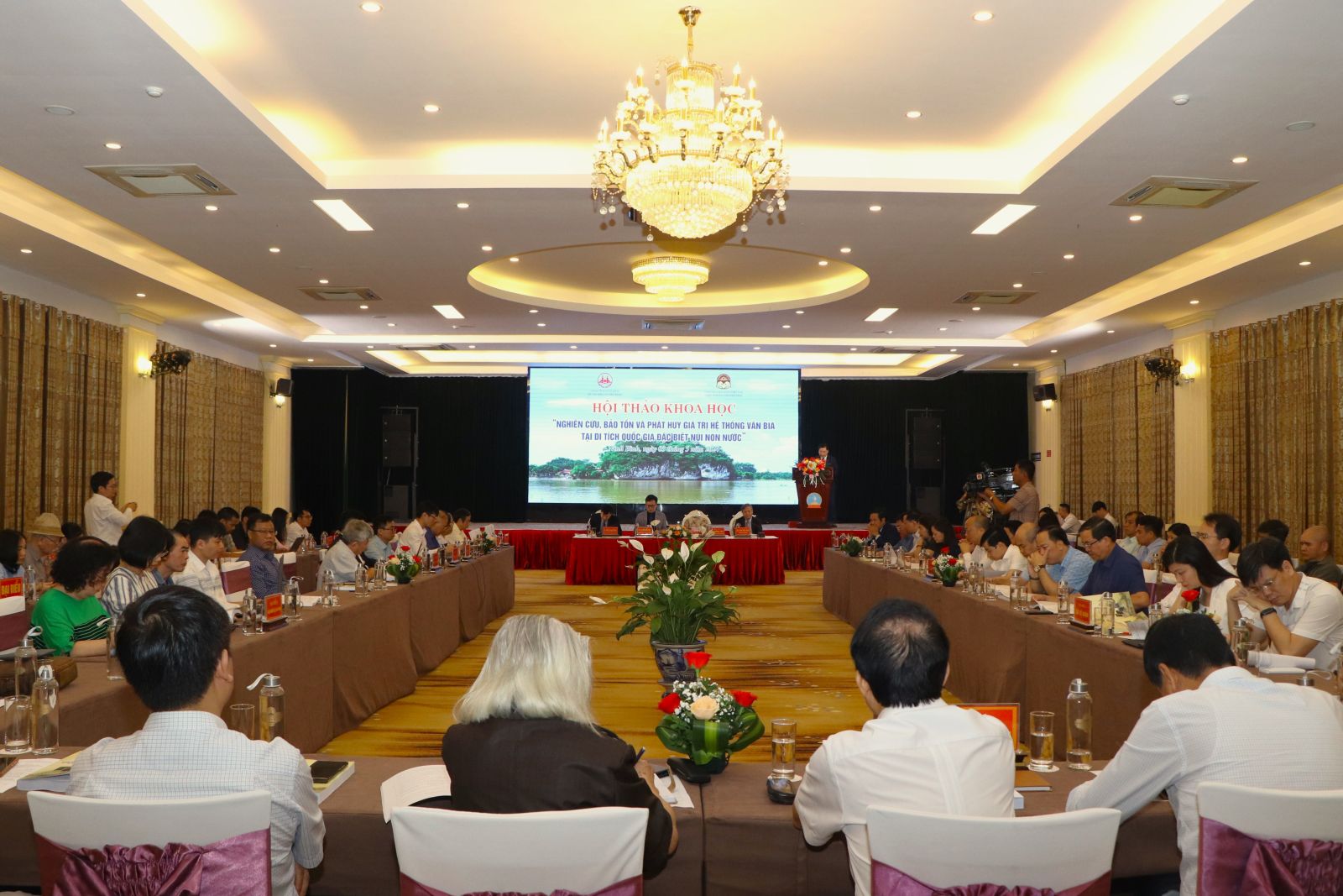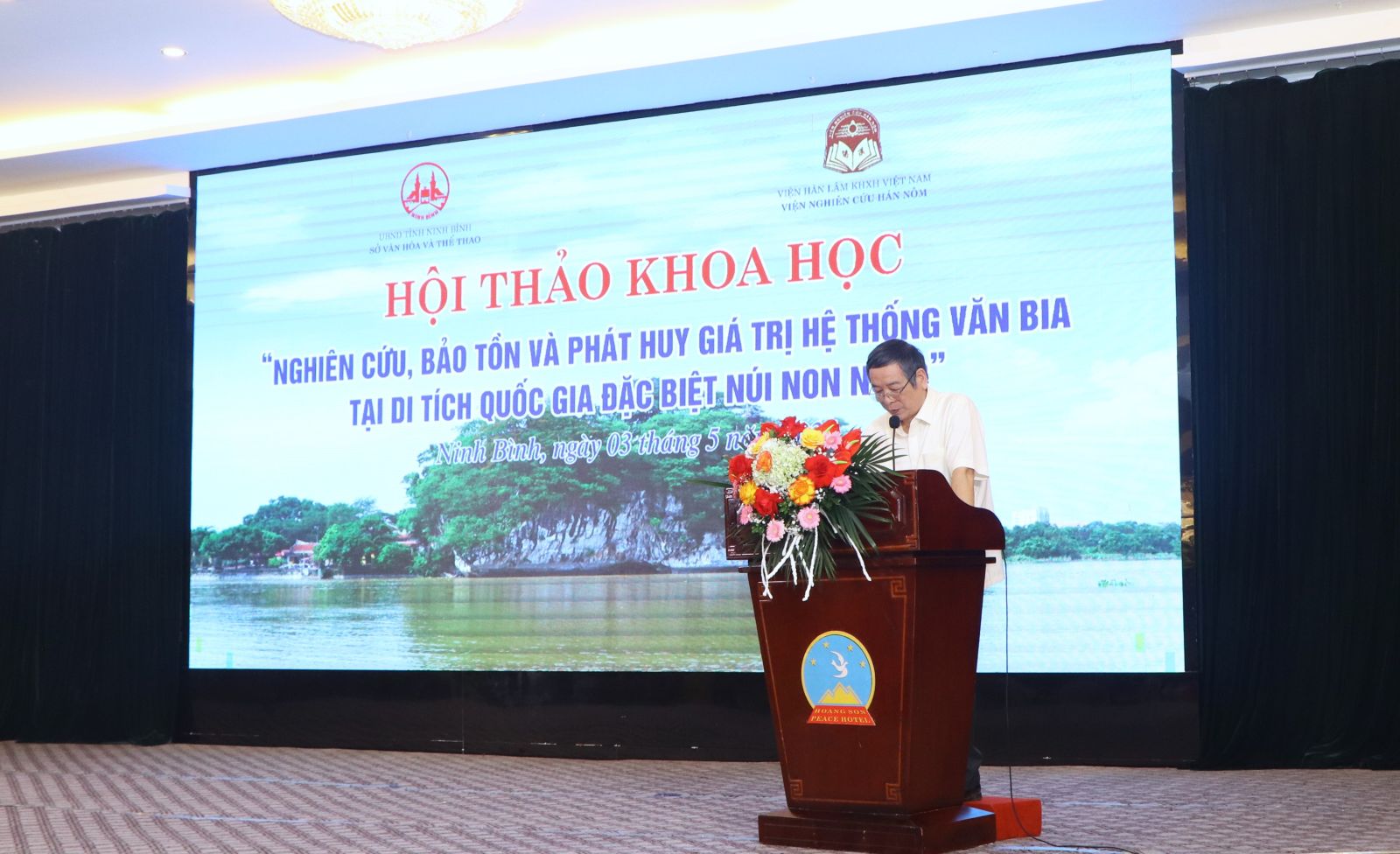 អនុវត្តផែនការលេខ ៣៧/KH-UBND ចុះថ្ងៃទី ២៩ ខែកុម្ភៈ ឆ្នាំ ២០២៤ របស់គណៈកម្មាធិការប្រជាជនខេត្ត Ninh Binh ស្តីពីការរៀបចំសិក្ខាសាលា វិទ្យាសាស្ត្រ “ស្រាវជ្រាវ អភិរក្ស និងផ្សព្វផ្សាយតម្លៃនៃប្រព័ន្ធ stele នៅវត្ថុបុរាណជាតិពិសេសភ្នំ Non Nuoc”។ នាព្រឹកថ្ងៃទី 3 ឧសភា ឆ្នាំ 2024 នៅសណ្ឋាគារ Hoang Son (ទីក្រុង Ninh Binh) គណៈកម្មាធិការប្រជាជនខេត្ត Ninh Binh បានសម្របសម្រួលជាមួយបណ្ឌិត្យសភាវិទ្យាសាស្ត្រសង្គមវៀតណាមរៀបចំសិក្ខាសាលាវិទ្យាសាស្ត្រ "ស្រាវជ្រាវ អភិរក្ស និងផ្សព្វផ្សាយតម្លៃនៃប្រព័ន្ធ stele នៅវត្ថុបុរាណជាតិពិសេសភ្នំ Non Nuoc"។