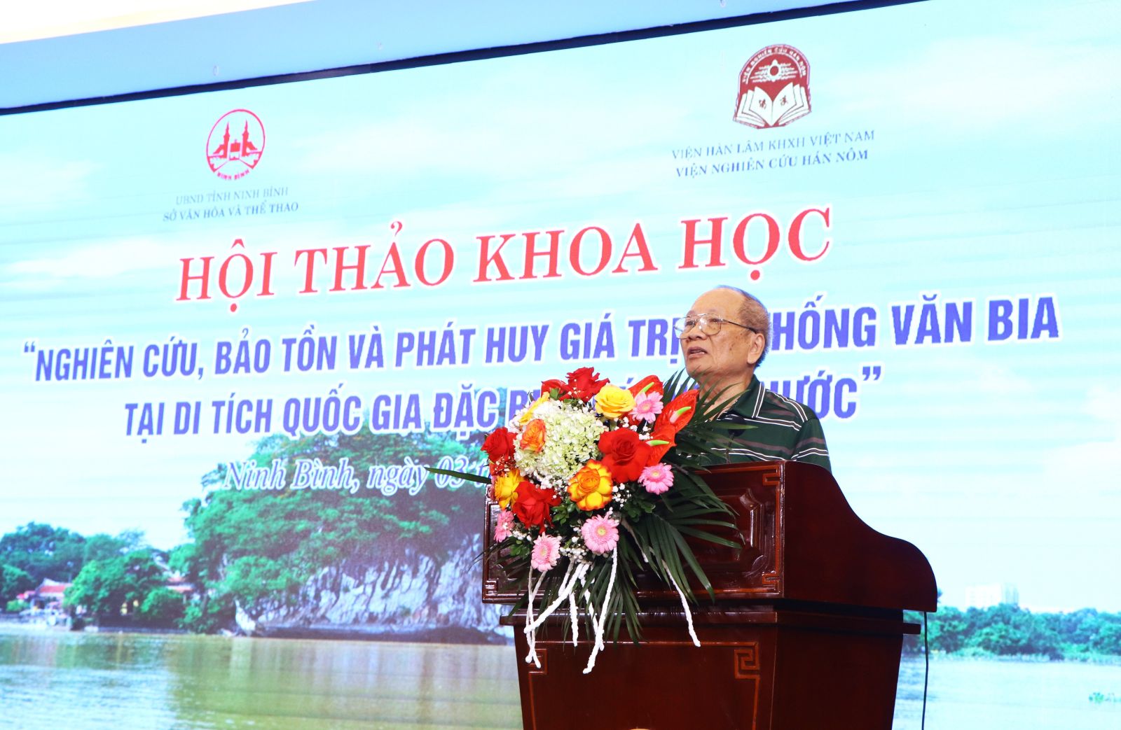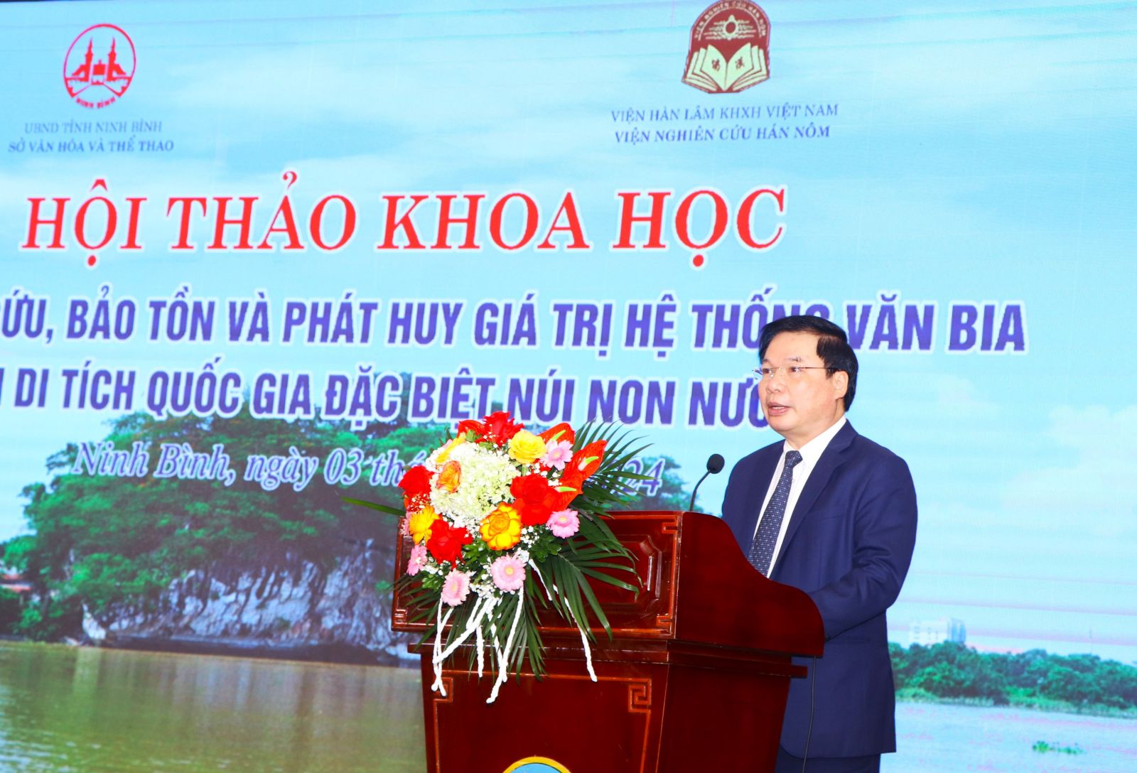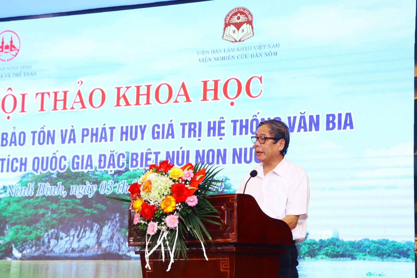 អនុវត្តផែនការលេខ ៣៧/KH-UBND ចុះថ្ងៃទី ២៩ ខែកុម្ភៈ ឆ្នាំ ២០២៤ របស់គណៈកម្មាធិការប្រជាជនខេត្ត Ninh Binh ស្តីពីការរៀបចំសិក្ខាសាលា វិទ្យាសាស្ត្រ “ស្រាវជ្រាវ អភិរក្ស និងផ្សព្វផ្សាយតម្លៃនៃប្រព័ន្ធ stele នៅវត្ថុបុរាណជាតិពិសេសភ្នំ Non Nuoc”។ នាព្រឹកថ្ងៃទី 3 ឧសភា ឆ្នាំ 2024 នៅសណ្ឋាគារ Hoang Son (ទីក្រុង Ninh Binh) គណៈកម្មាធិការប្រជាជនខេត្ត Ninh Binh បានសម្របសម្រួលជាមួយបណ្ឌិត្យសភាវិទ្យាសាស្ត្រសង្គមវៀតណាមរៀបចំសិក្ខាសាលាវិទ្យាសាស្ត្រ "ស្រាវជ្រាវ អភិរក្ស និងផ្សព្វផ្សាយតម្លៃនៃប្រព័ន្ធ stele នៅវត្ថុបុរាណជាតិពិសេសភ្នំ Non Nuoc"។
