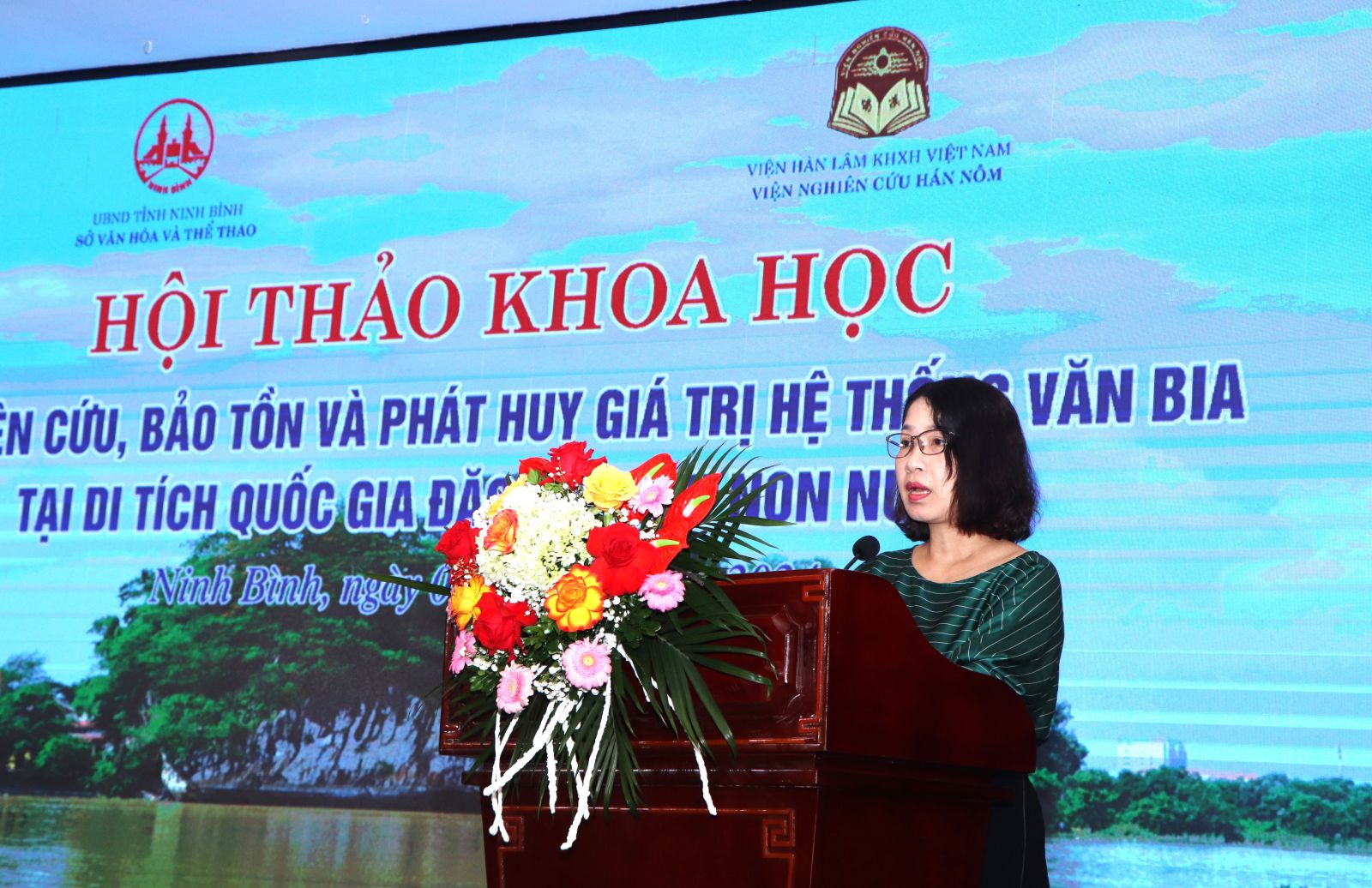 សាស្ត្រាចារ្យរង លោកបណ្ឌិត Vuong Thi Huong នាយករងវិទ្យាស្ថាន Han Nom Studies បានធ្វើបទបង្ហាញរបាយការណ៍ណែនាំ។