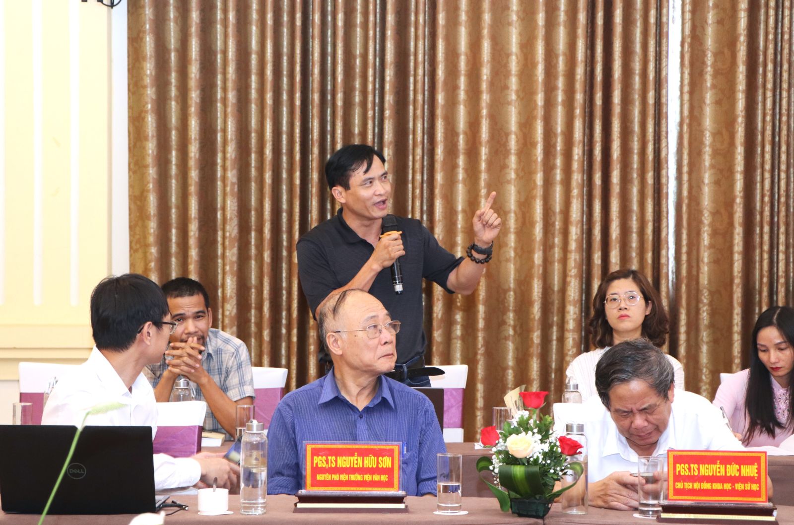 សាស្ត្រាចារ្យរង លោកបណ្ឌិត Nguyen Duc Nhue ប្រធានក្រុមប្រឹក្សាវិទ្យាសាស្ត្រ វិទ្យាស្ថានប្រវត្តិសាស្ត្រ បានបង្ហាញឯកសារនៅសិក្ខាសាលា។