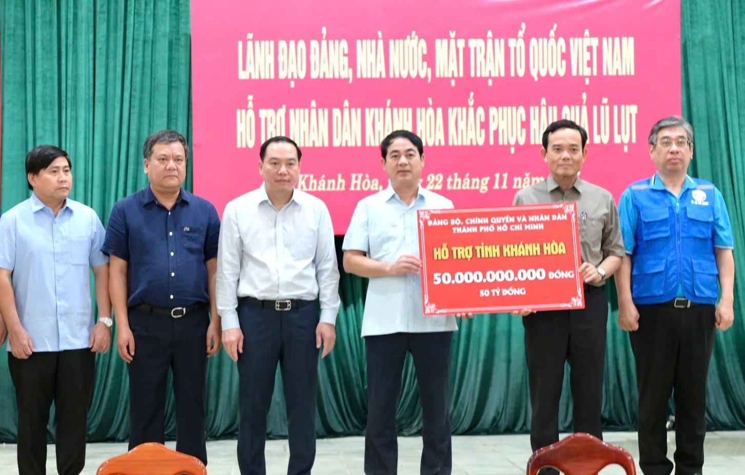 នារសៀលថ្ងៃទី២២ ខែវិច្ឆិកា នៅទីស្នាក់ការគណៈកម្មាធិការបក្សខេត្ត Khanh Hoa លោក Nguyen Phuoc Loc លេខារងគណៈកម្មាធិការបក្សទីក្រុង ប្រធានគណៈកម្មាធិការរណសិរ្សមាតុភូមិវៀតណាមទីក្រុងហូជីមិញបានធ្វើការជាមួយគណៈកម្មាធិការរណសិរ្សមាតុភូមិវៀតណាមខេត្ត Khanh Hoa និងមន្ទីរ អង្គភាពនានាលើការជំនះពុះពារផលវិបាកដោយទឹកជំនន់។