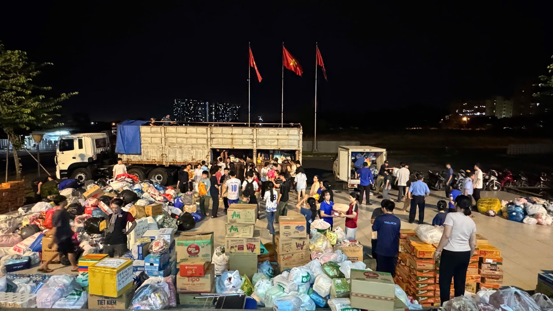 កាលពីយប់មិញផងដែរ សម្ភារៈចាំបាច់ចំនួន 90 តោន (នៅឯកន្លែងទទួលរបស់កាកបាទក្រហមទីក្រុងហូជីមិញ) ត្រូវបានដឹកជញ្ជូនពេញមួយយប់ទៅកាន់ខេត្ត Khanh Hoa និង Dak Lak ដើម្បីផ្គត់ផ្គង់ដល់ប្រជាជននៅតំបន់រងគ្រោះដោយទឹកជំនន់។