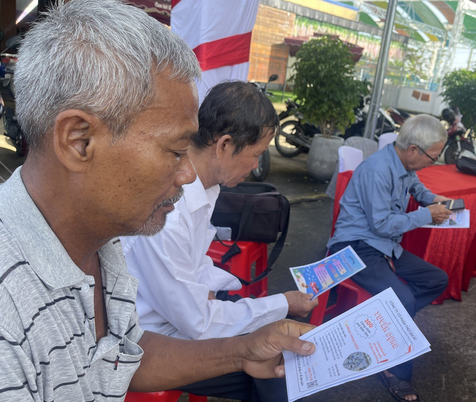 កម្មករស្វែងរកព័ត៌មានការងារនៅក្នុងកម្មវិធីពិគ្រោះយោបល់ការងារ និងណែនាំការងារនៅឃុំចូវថាញ់ នៅព្រឹកថ្ងៃទី៩ វិច្ឆិកា។