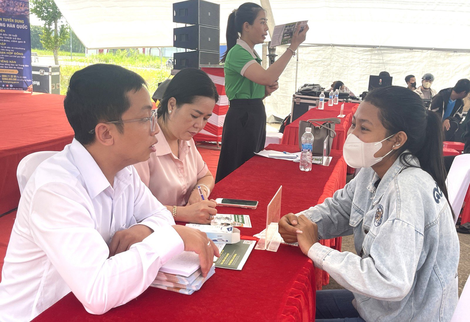 តំណាងក្រុមហ៊ុនភាគហ៊ុនធនធានមនុស្សអន្តរជាតិ Hung Thinh ប្រឹក្សាយោបល់លើការងារក្នុងទីផ្សារកូរ៉េសម្រាប់កម្មករ។