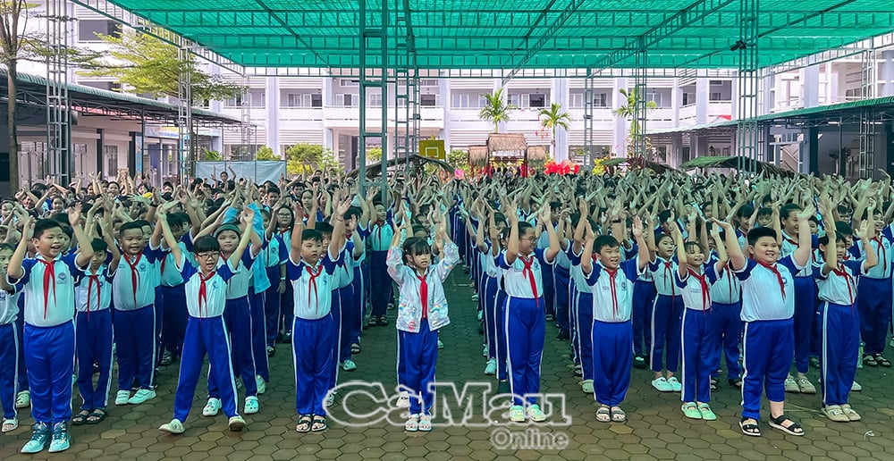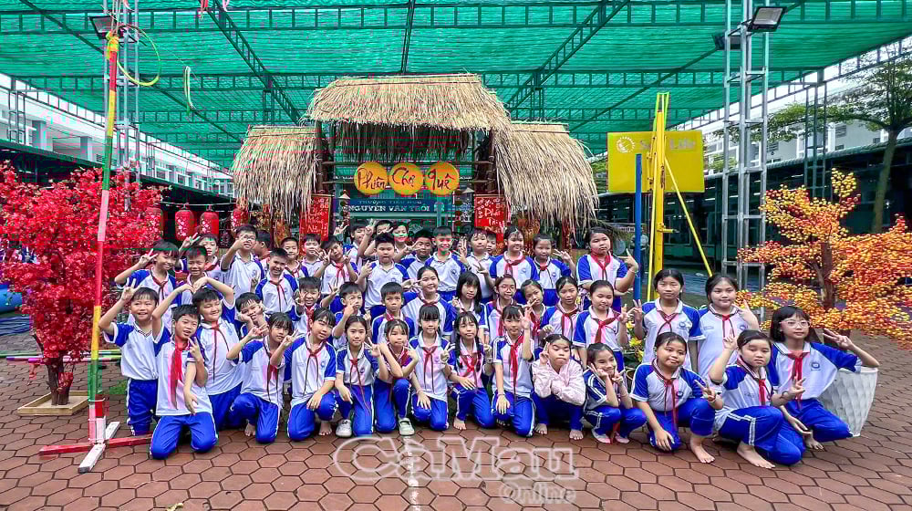 សិស្សានុសិស្សជាង 520 នាក់នៃសាលាបឋមសិក្សា Nguyen Van Troi បានចូលរួមយ៉ាងសាទរក្នុងសកម្មភាពផ្សារជនបទ។ រូបថត៖ TRUC LINH