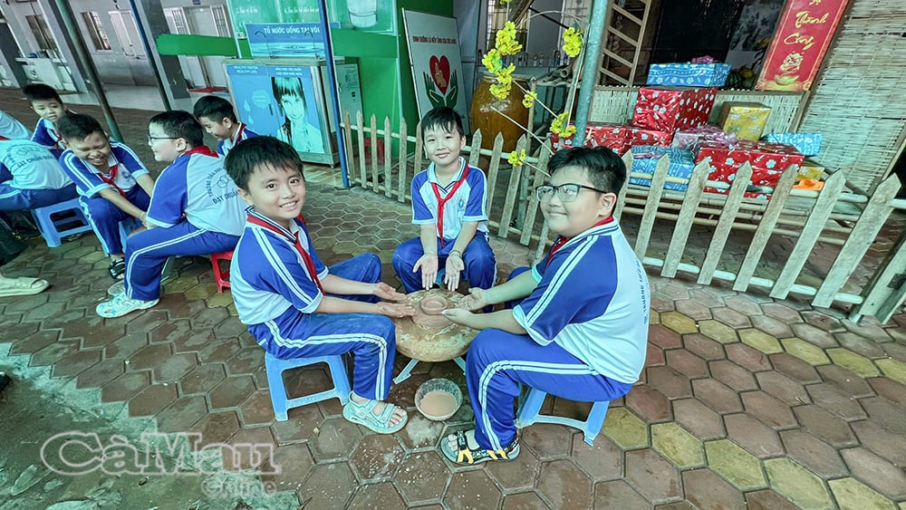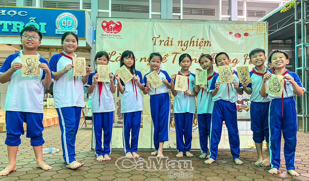 Nguyen Quang Minh សិស្សថ្នាក់ទី 5C បានចែករំលែកដោយក្តីរំភើបថា៖ “នេះជាលើកទីមួយហើយដែលខ្ញុំធ្វើគ្រឿងស្មូន និងបោះពុម្ពគំនូរ Dong Ho ដោយខ្លួនឯង ពីដំបូងខ្ញុំមិនសូវពូកែទេ ប៉ុន្តែដោយសារការណែនាំរបស់គ្រូ ខ្ញុំមានអារម្មណ៍សប្បាយរីករាយ និងបានស្វែងយល់បន្ថែមអំពីវិជ្ជាជីវៈប្រពៃណីរបស់ជីដូនជីតារបស់ខ្ញុំ”។