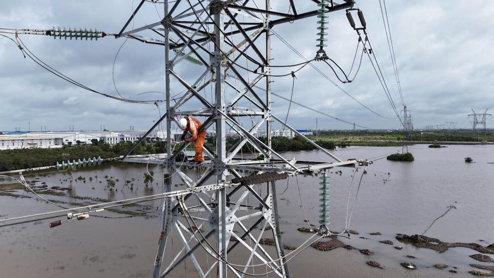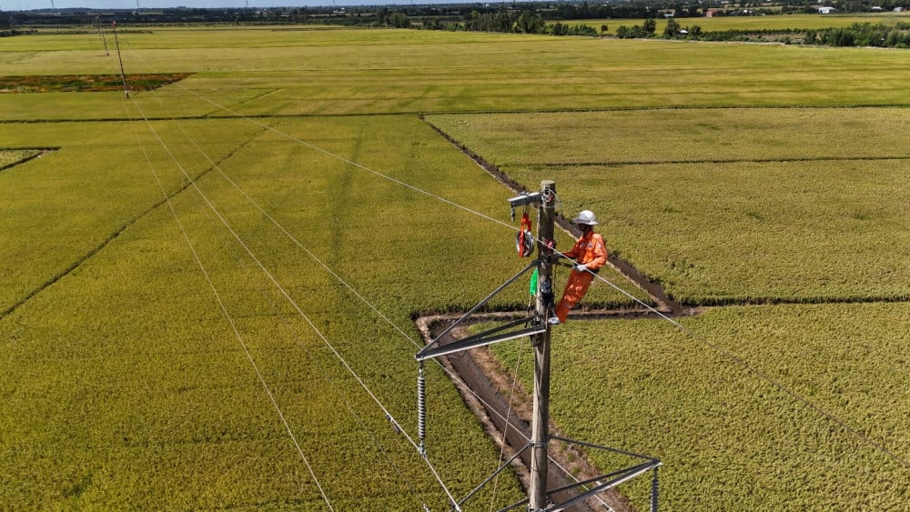 ការសាងសង់ការជំនួសខ្សែការពាររន្ទះ រួមជាមួយនឹងខ្សែកាបអុបទិកលើខ្សែ 110kV 171 Duc Hoa 3 - 171 Le Long ក្នុងស្ថានភាពដីលិចទឹក ធានាបាននូវវឌ្ឍនភាពសម្រាប់អ័ក្សផ្គត់ផ្គង់ថាមពល "ឆ្អឹងខ្នង" នៃសួនឧស្សាហកម្ម។