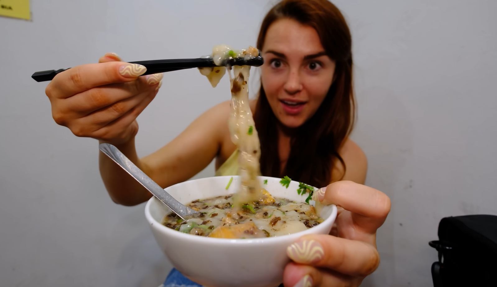 អ្នកស្រី YouTuber រូបនេះបាននិយាយថា៖ «កុំខ្លាចទៅតាមផ្លូវតូច និងងងឹតបែបនេះ ព្រោះអ្នកអាចរីករាយជាមួយនំបញ្ចុកក្តៅឆ្ងាញ់នៅទីនេះ។ អ្នកមិនស្តាយក្រោយឡើយ»។