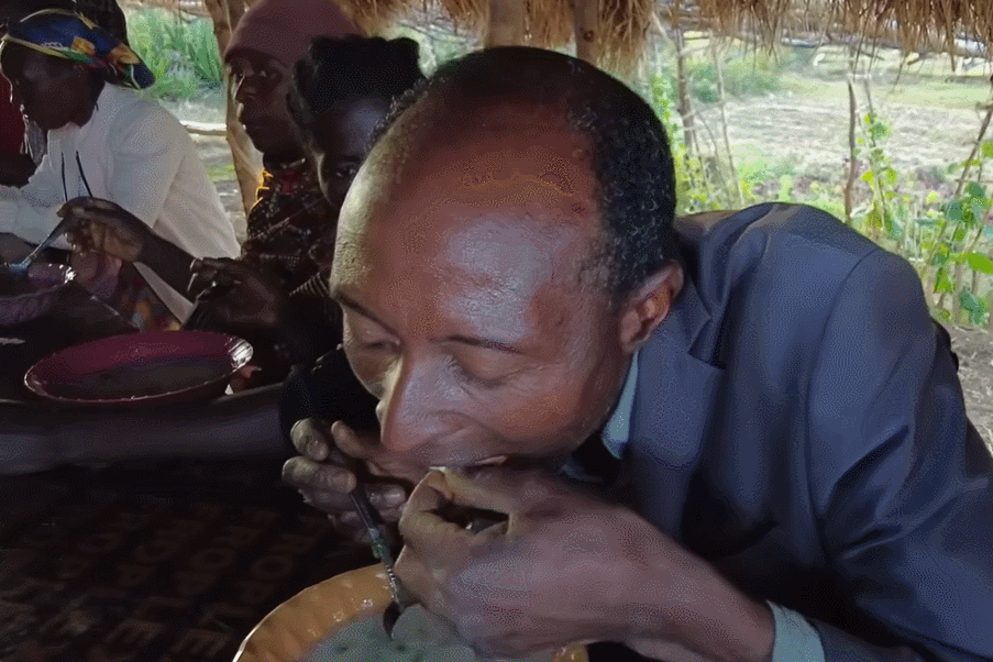 នៅចុងបញ្ចប់នៃអាហារ ដាល់តុនមិនអាចលាក់អារម្មណ៍រំភើបរបស់គាត់បានឡើយ នៅពេលដែលជួបប្រទះនឹងម្ហូបត្រីប្រឡាក់ "អង្ករស៊ី" ។