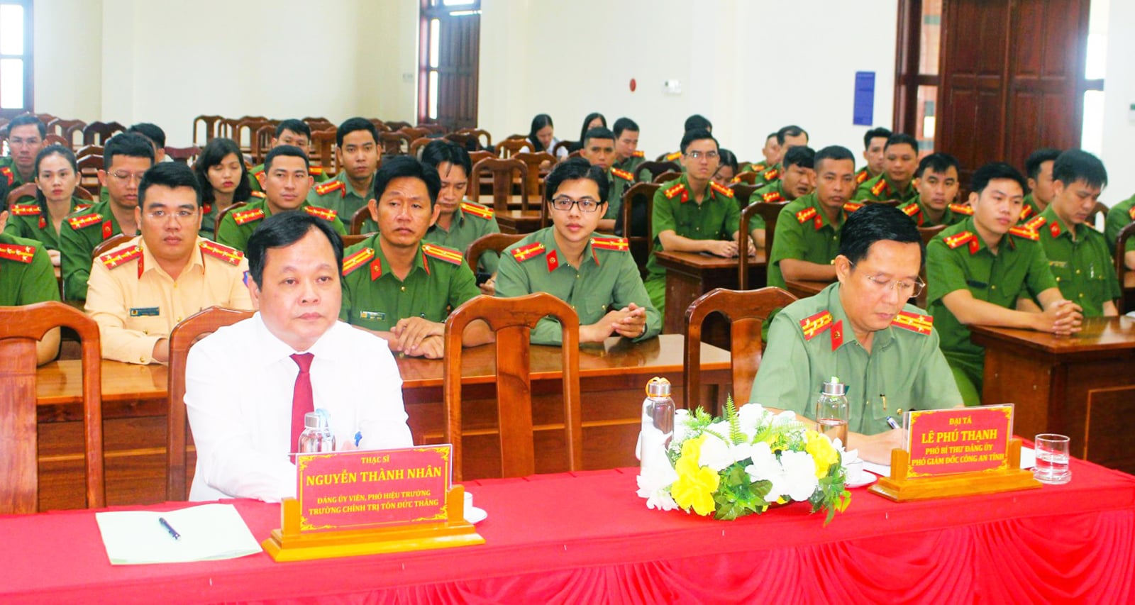 នៅព្រឹកថ្ងៃទី១៦ ខែធ្នូ សាលានយោបាយ Ton Duc Thang សហការជាមួយនគរបាលខេត្ត An Giang បានរៀបចំពិធីបើកវគ្គសិក្សាទ្រឹស្តីនយោបាយកម្រិតមធ្យមកម្រិត A102 ដែលមានការចូលរួមពីលោកវរសេនីយ៍ឯក Le Phu Thanh អនុប្រធាននគរបាលខេត្ត An Giang និងលោក Nguyen Thanh Nhan អនុប្រធានសាលានយោបាយ Ton Duc Thang។