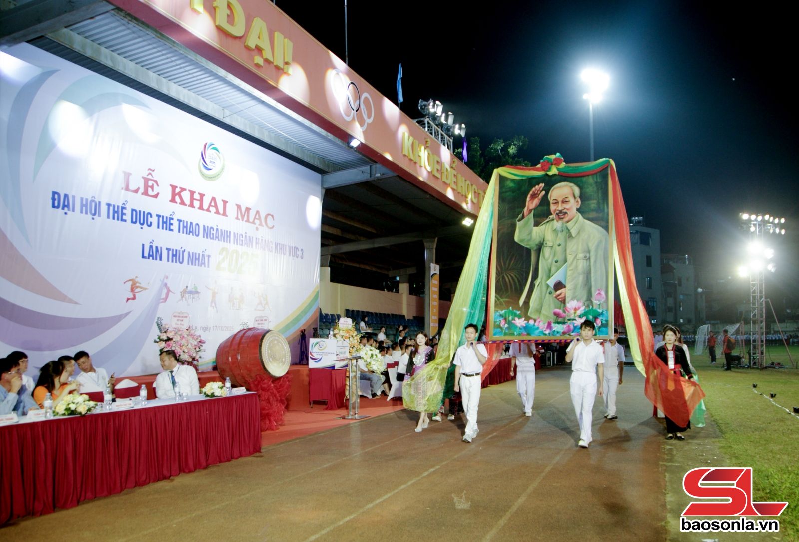ពិធីបើកបានប្រព្រឹត្តទៅយ៉ាងឱឡារិកជាមួយនឹងក្បួនដង្ហែដ៏មានអត្ថន័យនៃនិមិត្តសញ្ញាកីឡា៖ នាំមុខគេគឺទង់ក្រហមដែលមានផ្កាយពណ៌លឿងអមដោយរូបបញ្ឈររបស់ប្រធានហូជីមិញដ៏អស្ចារ្យ។ បន្ទាប់ពីរូបលោកប្រធានហូជីមិញគឺជាទង់នៃសមាជកីឡាធនាគារភូមិភាគទី 3 ឆ្នាំ 2025 និងទង់ក្រហម។