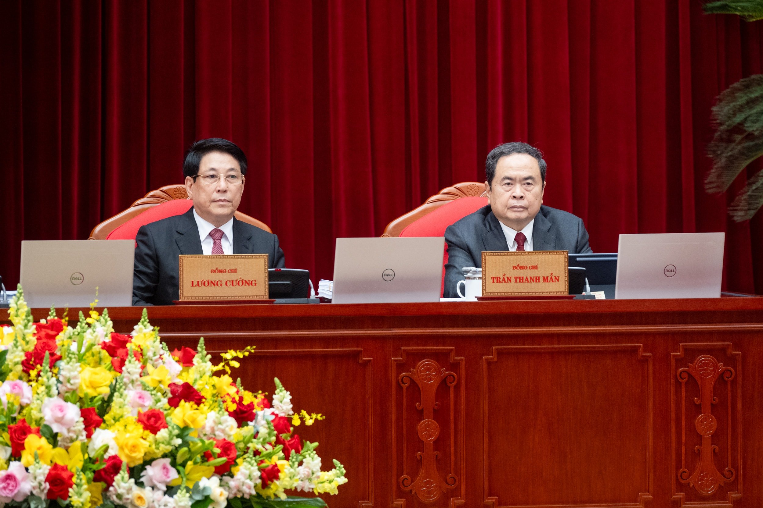 ប្រធានរដ្ឋ Luong Cuong និងប្រធានរដ្ឋសភាលោក Tran Thanh Man ក្នុងសន្និសីទ