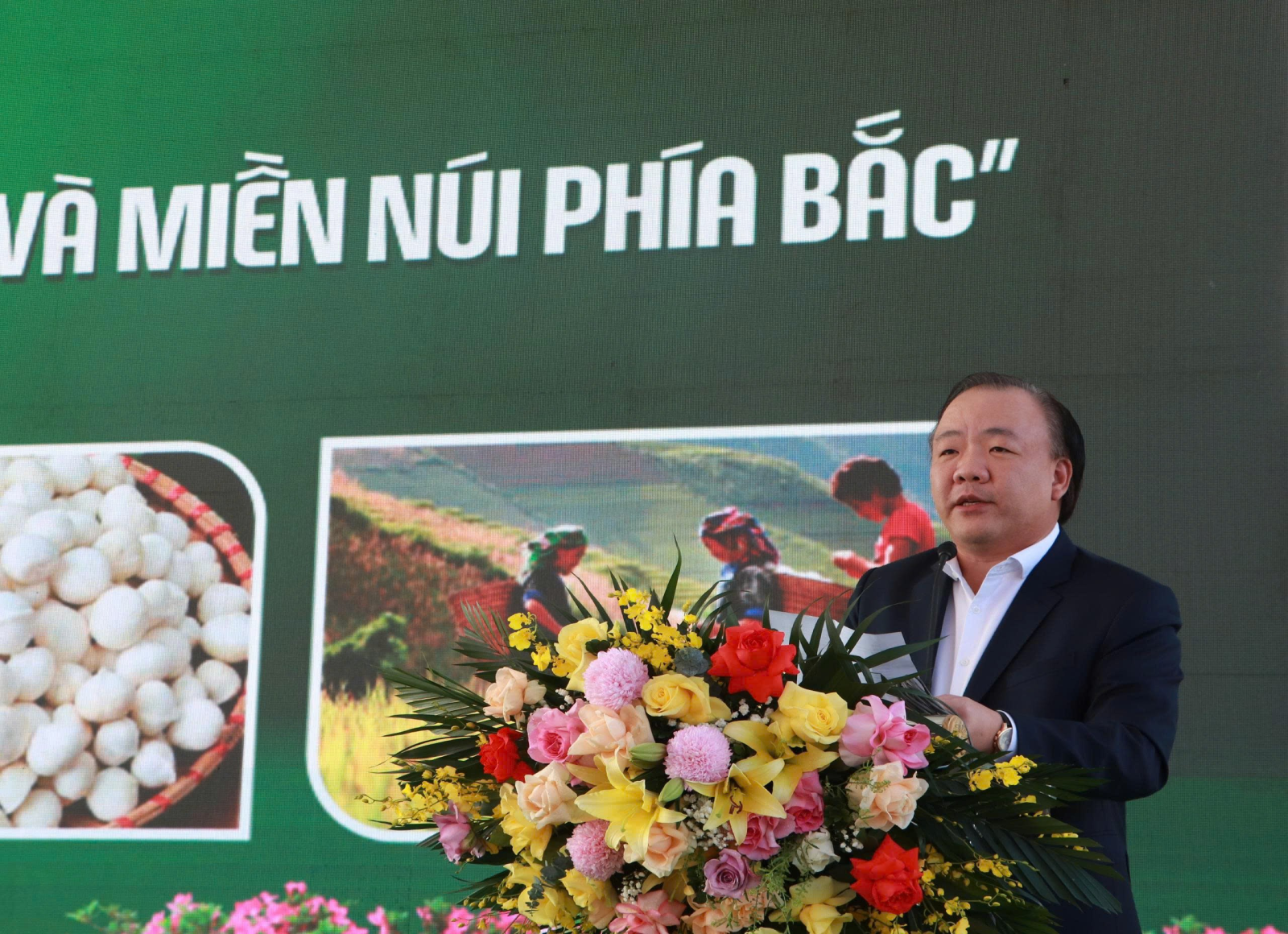 សមមិត្ត Tran Huu Linh ប្រធាននាយកដ្ឋានគ្រប់គ្រង និងអភិវឌ្ឍន៍ទីផ្សារក្នុងស្រុក (ក្រសួងឧស្សាហកម្ម និងពាណិជ្ជកម្ម) ថ្លែងក្នុងពិធីបើកមហោស្រព។