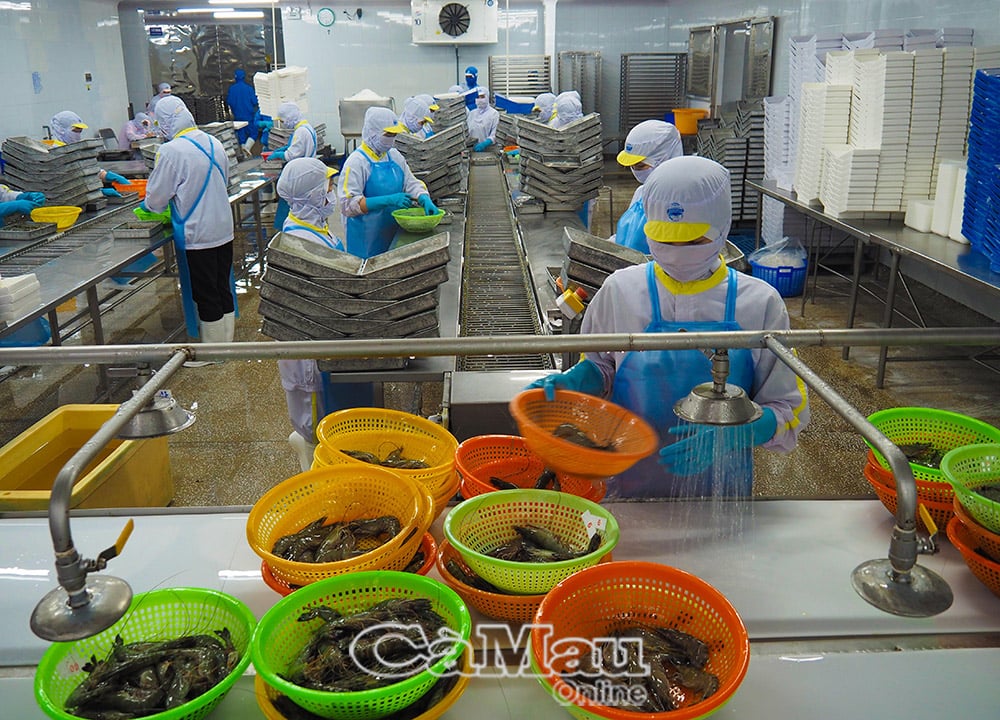 កែច្នៃបង្គាខ្លាខ្មៅសរីរាង្គនៅក្រុមហ៊ុនភាគហ៊ុនរួមនាំចូល-នាំចេញគ្រឿងសមុទ្រ Nam Can។