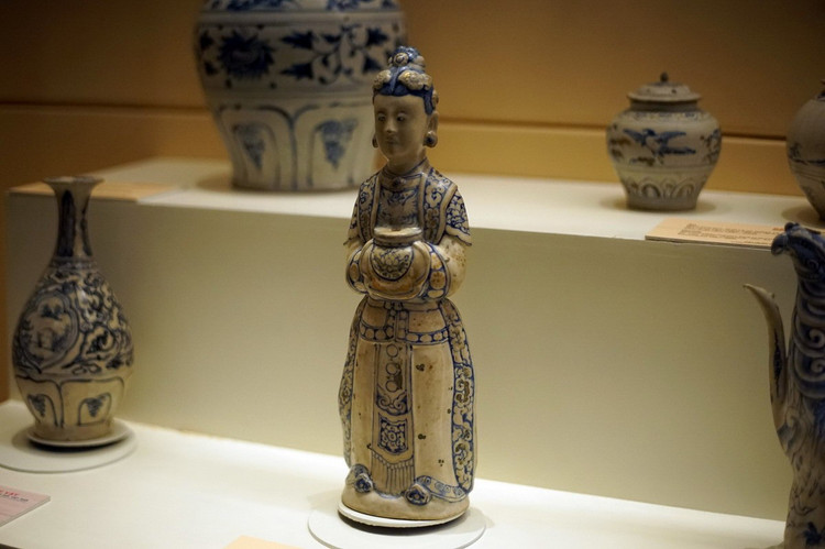 រូបសំណាកស្ត្រីដ៏ថ្លៃថ្នូម្នាក់ធ្វើពីសេរ៉ាមិចពណ៌ខៀវ និងមាស ដើមរាជវង្ស Le សតវត្សទី 15 ត្រូវបានរកឃើញនៅលើកប៉ាល់បុរាណនៅ Cu Lao Cham, Hoi An, Quang Nam ។ រូបថត៖ Quoc Le ។