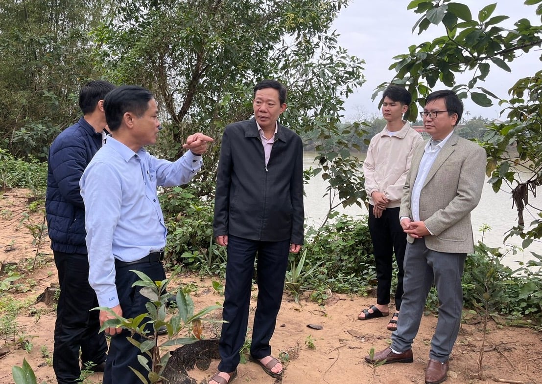 | អនុប្រធានក្រុមប្រឹក្សាប្រជាជនទីក្រុង Ha Van Tuan (កណ្តាល) បានអង្កេតការបាក់ដីច្រាំងទន្លេ។ |