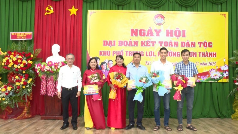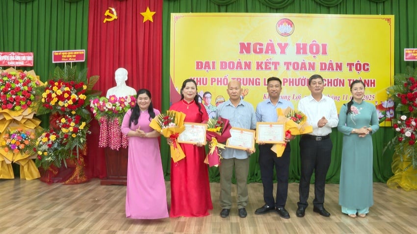 ក្នុងឱកាសនេះ ថ្នាក់ដឹកនាំគណៈកម្មាធិការបក្សខេត្ត - ក្រុមប្រឹក្សាប្រជាជន - គណៈកម្មាធិការប្រជាជន - គណៈកម្មាធិការរណសិរ្សមាតុភូមិវៀតណាមខេត្ត Dong Nai បានប្រគល់និមិត្តសញ្ញានៃតំបន់លំនៅដ្ឋានវប្បធម៌ធម្មតាដល់សង្កាត់ Trung Loi និងជូនអំណោយដល់គ្រួសារវប្បធម៌ធម្មតាចំនួន ៥។ គណៈកម្មាធិការប្រជាជនសង្កាត់ Chon Thanh ប្រគល់ប័ណ្ណសរសើរជូនសង្កាត់ Trung Loi និង 2 គ្រួសារដែលមានស្នាដៃឆ្នើមក្នុងការអនុវត្តចលនាត្រាប់តាមតំបន់លំនៅដ្ឋានក្នុងឆ្នាំ 2025។