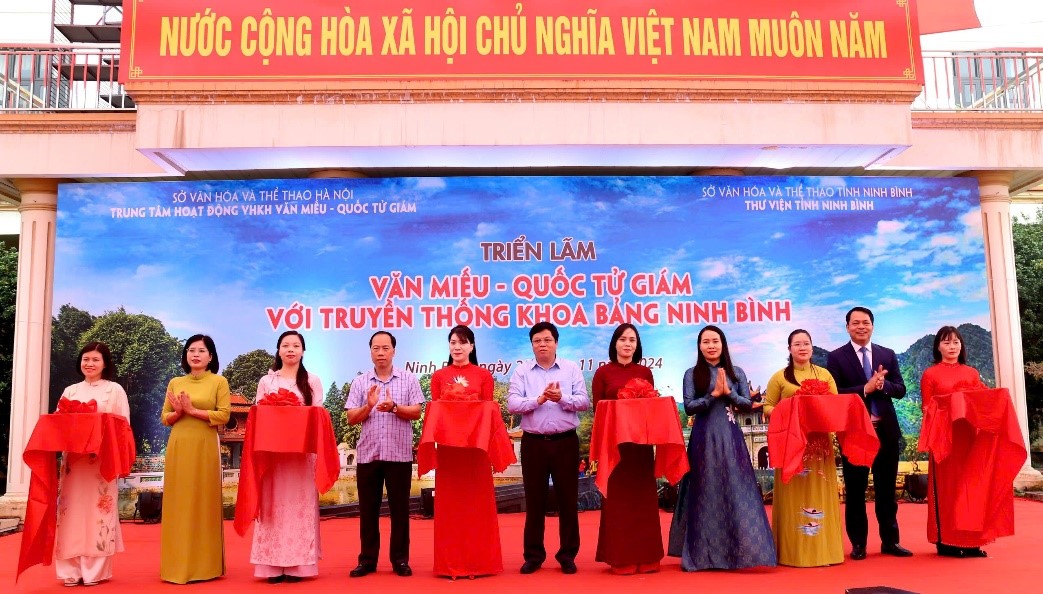 ក្នុងក្របខ័ណ្ឌនៃពិធីបុណ្យ Ninh Binh លើកទី 3 ឆ្នាំ 2024 អបអរសាទរទិវាបេតិកភណ្ឌវប្បធម៌វៀតណាម (ថ្ងៃទី 23 ខែវិច្ឆិកា ឆ្នាំ 2024) នាព្រឹកថ្ងៃទី 25 ខែវិច្ឆិកា ឆ្នាំ 2024 បណ្ណាល័យខេត្ត Ninh Binh (អង្គភាពមួយក្រោមមន្ទីរវប្បធម៌ និងកីឡាខេត្ត Ninh Binh) បានសម្របសម្រួលជាមួយមជ្ឈមណ្ឌលសកម្មភាពវប្បធម៌ និងវិចិត្រសិល្បៈ Linh Binh។ - Quoc Tu Giam រៀបចំបើកការតាំងពិព័រណ៌ Van Mieu - Quoc Tu Giam ជាមួយនឹងប្រពៃណី អប់រំ និងប្រឡង នៅ Ninh Binh ។