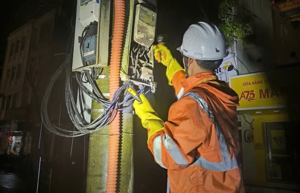| បុគ្គលិកក្រុមហ៊ុនអគ្គិសនី Hue ពិនិត្យការបិទ និងបើកភ្លើងនៅតំបន់សំខាន់ៗ។ |