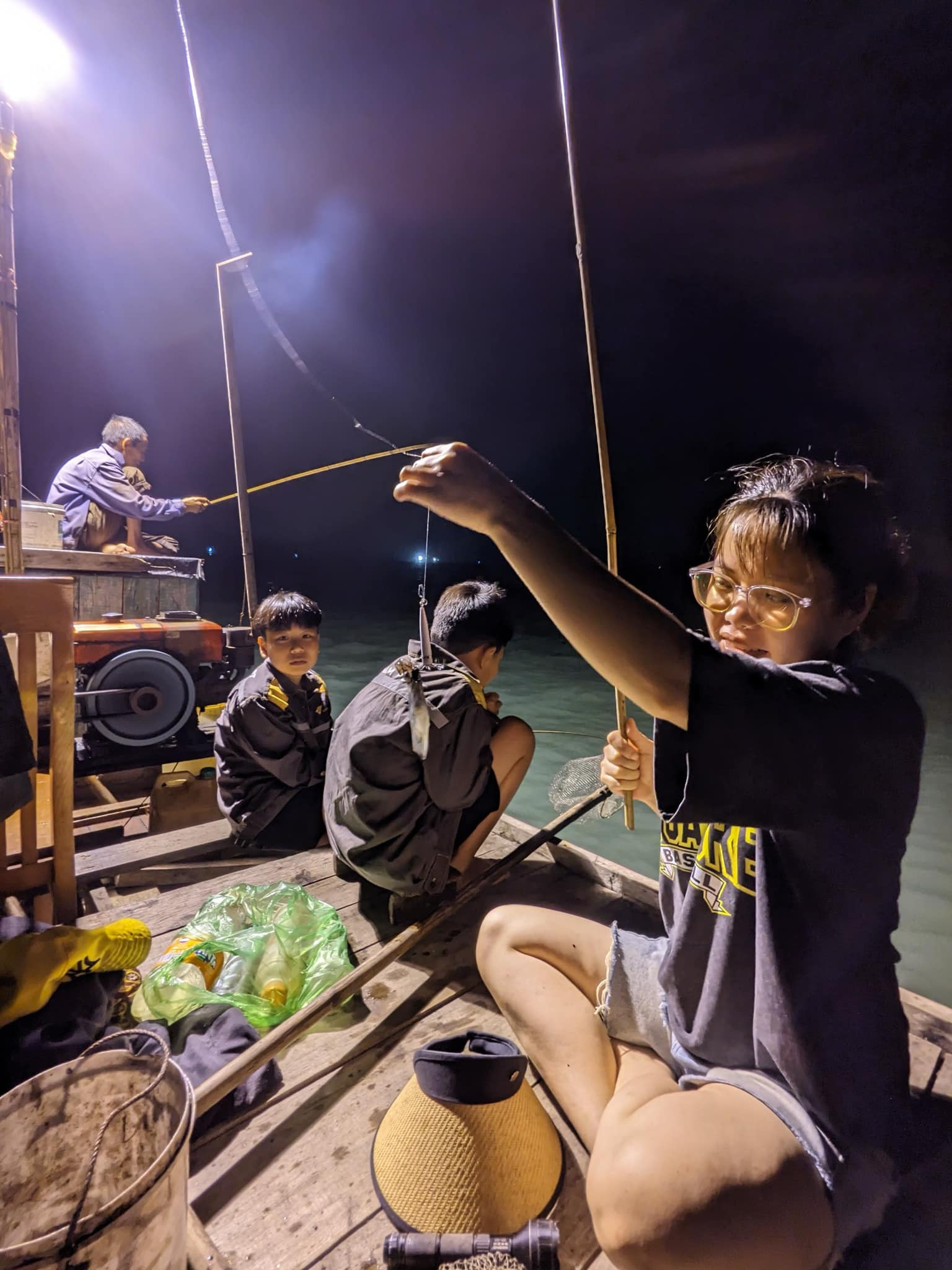 កូនក្រមុំ Quang Ninh ទទួលបទពិសោធន៍នេសាទមឹកពេលយប់នៅលើកោះ Cai Chien