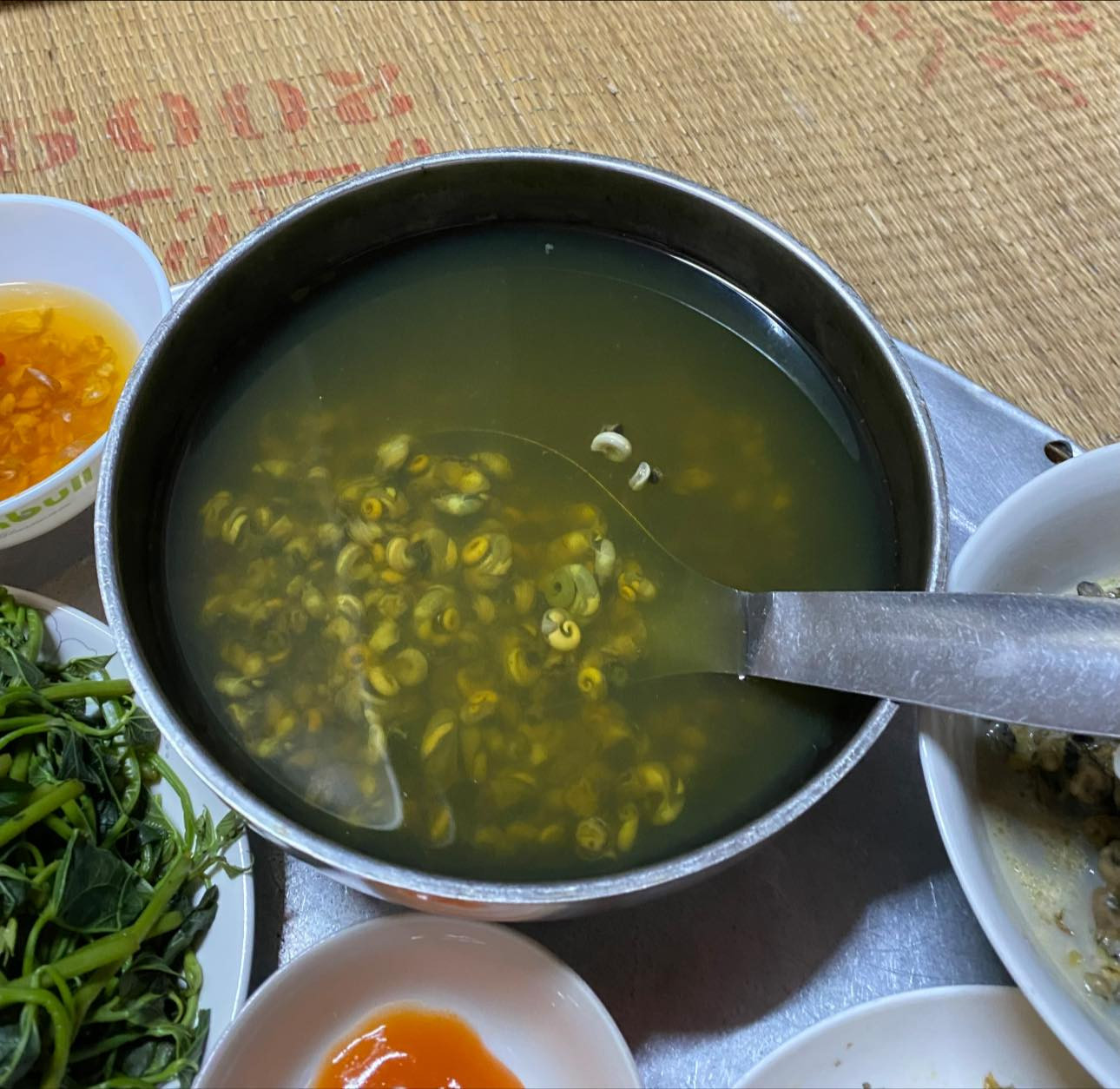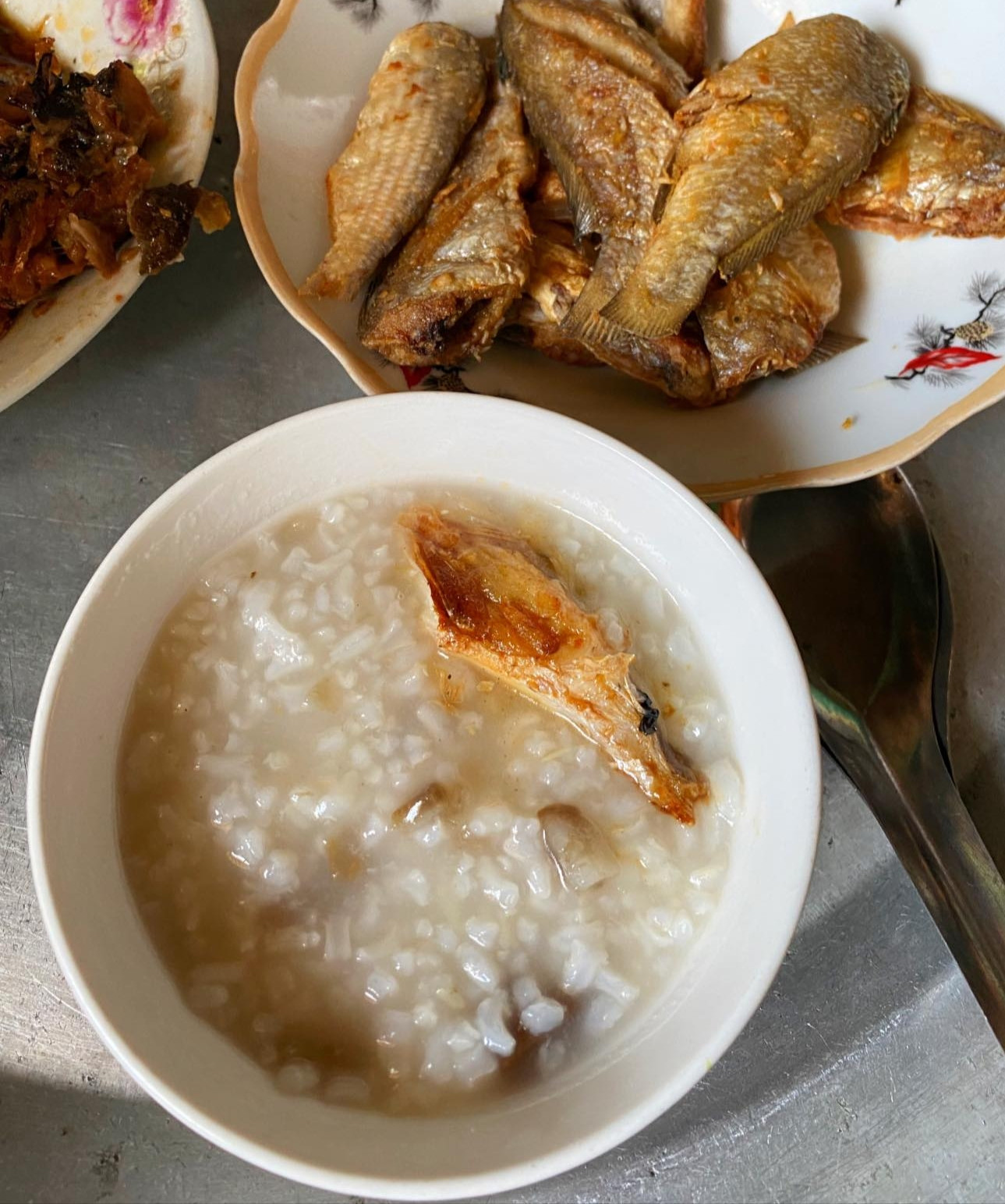 បបរជាមួយអាហារប្រៃ និងស៊ុបត្រីជាមួយស្លឹកស្ពៃ