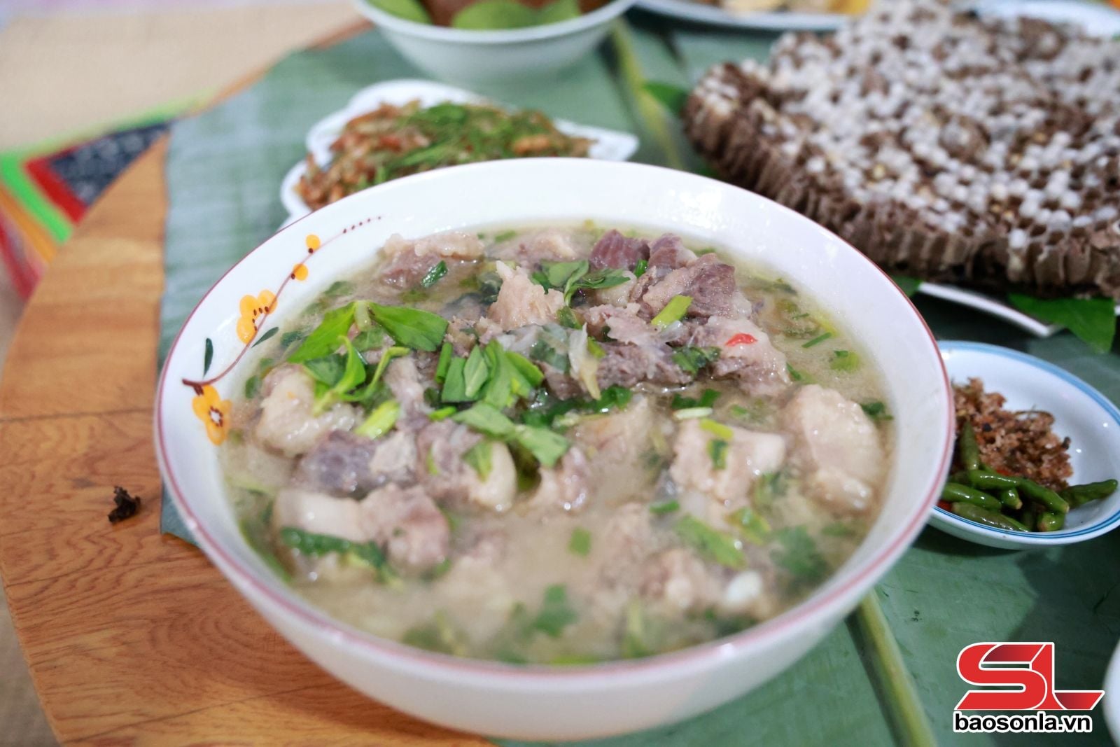 សាច់ជ្រូកបំពង គឺជាមុខម្ហូបធម្មតារបស់ជនជាតិ Muong ។ ក្រុមនីមួយៗក៏បានរៀបចំបទបង្ហាញដើម្បីណែនាំពីអត្ថន័យនៃពិធីបុណ្យ បញ្ចុះបញ្ចូលចៅក្រម និងទស្សនិកជន ព្រមទាំងណែនាំដល់មិត្តភ័ក្តិ និងភ្ញៀវមកពីជិត និងឆ្ងាយនូវមុខម្ហូបដ៏ពិសេសរបស់ជនជាតិ Muong។