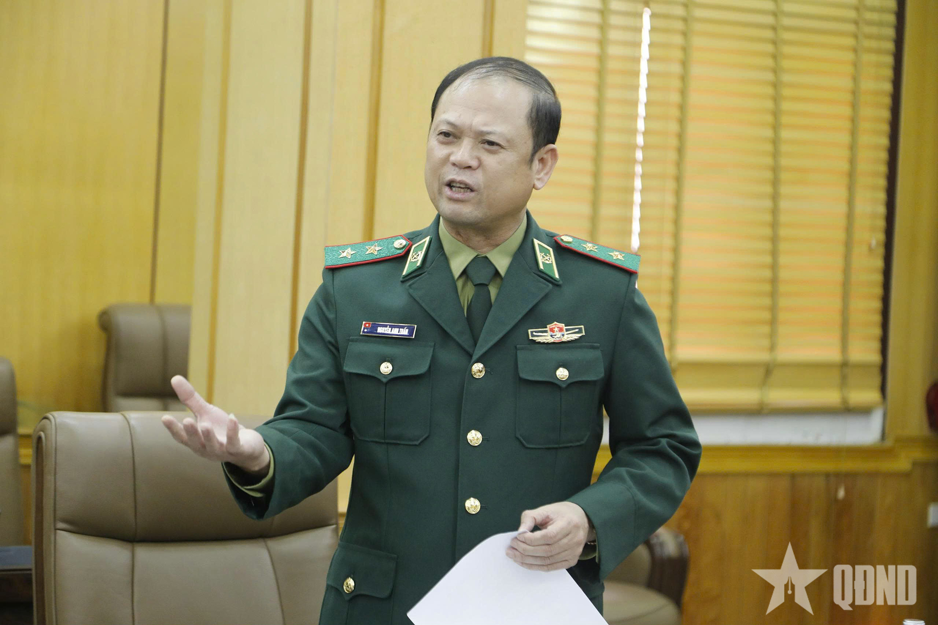 | លោកឧត្តមសេនីយ៍ឯក Nguyen Anh Tuan ស្នងការនយោបាយនៃកងកម្លាំងការពារព្រំដែន និងជាសមាជិកគណៈកម្មាធិការដឹកនាំមូលនិធិបានថ្លែងសុន្ទរកថានៅក្នុងសន្និសីទ។ |