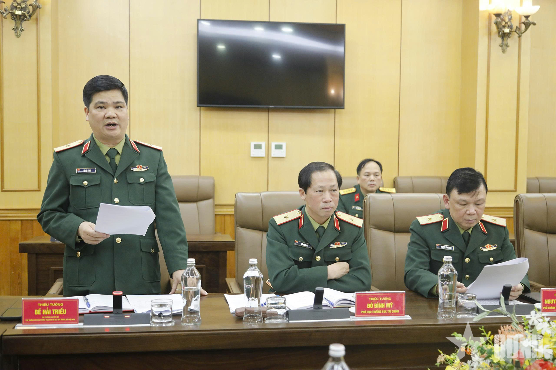 | ឧត្តមសេនីយ៍ទោ Be Hai Trieu ប្រធាននាយកដ្ឋានចលនាមហាជន និងជាអនុប្រធានការិយាល័យអចិន្ត្រៃយ៍នៃមូលនិធិបានថ្លែងសុន្ទរកថានៅក្នុងសន្និសីទ។ |