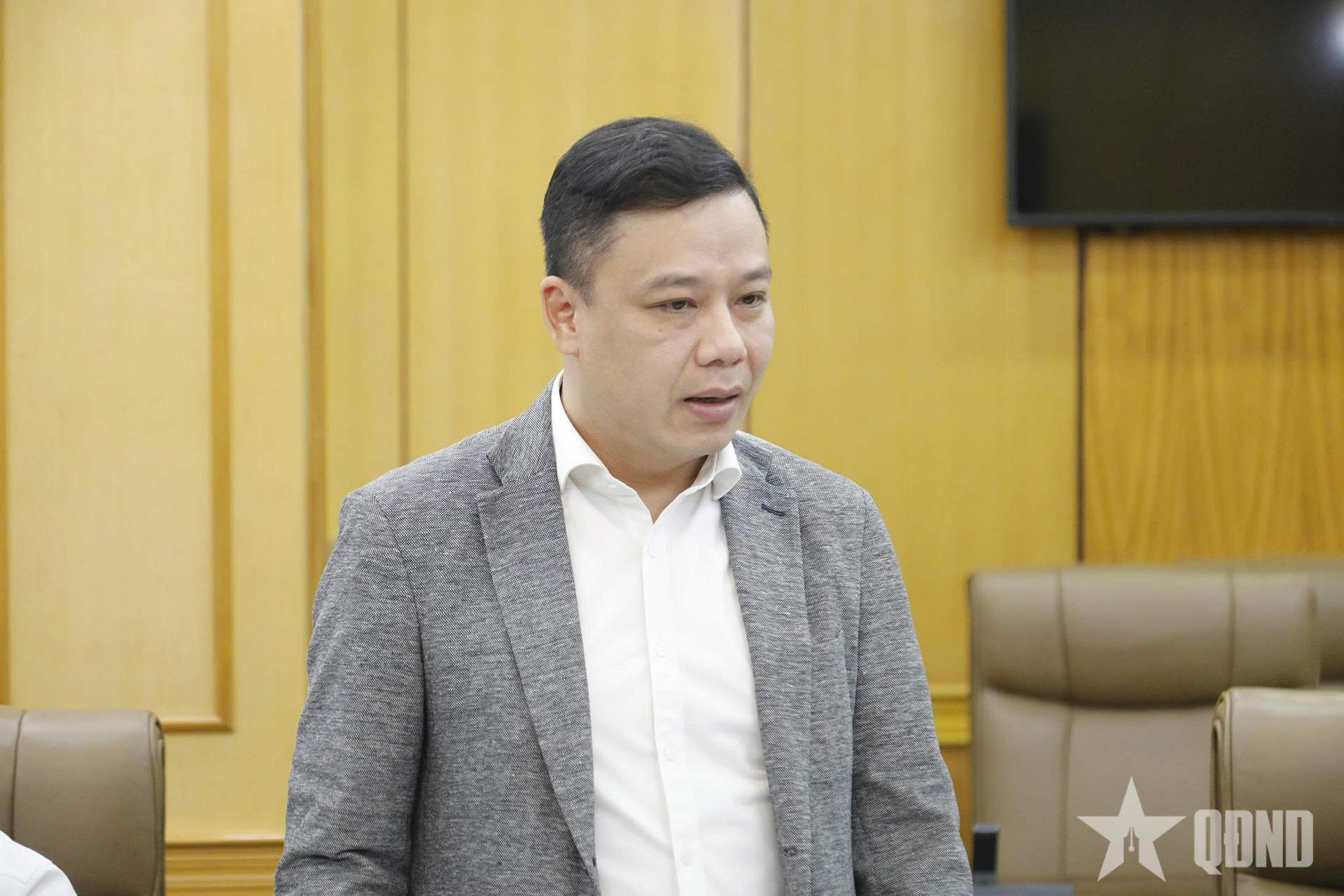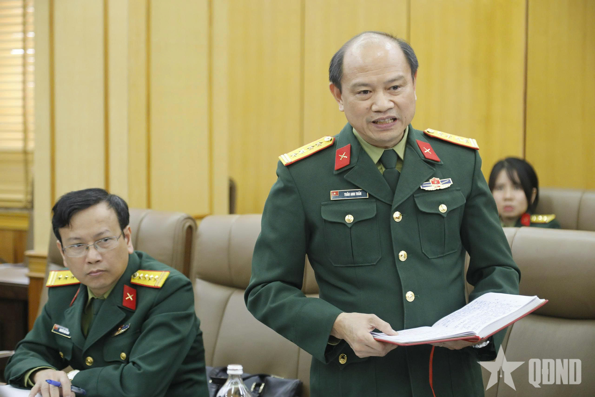 | លោកវរសេនីយ៍ឯក Tran Anh Tuan និពន្ធនាយករងនៃកាសែតកងទ័ពប្រជាជនបានថ្លែងសុន្ទរកថានៅក្នុងសន្និសីទ។ |