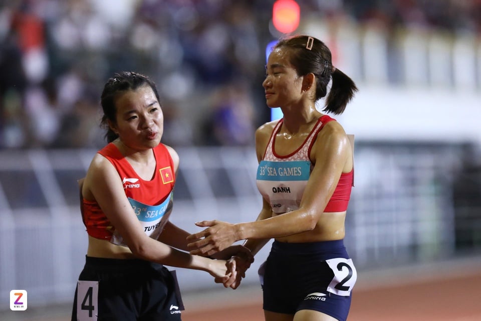 កីឡាការិនី Tuyết និង Oanh បាននាំមកផ្ទះវិញនូវជ័យជម្នះ 1-2 សម្រាប់អត្តពលកម្មវៀតណាមក្នុងការរត់ប្រណាំងចម្ងាយ 10,000 ម៉ែត្រនារី។ រូបថត៖ Minh Chiến ។ |