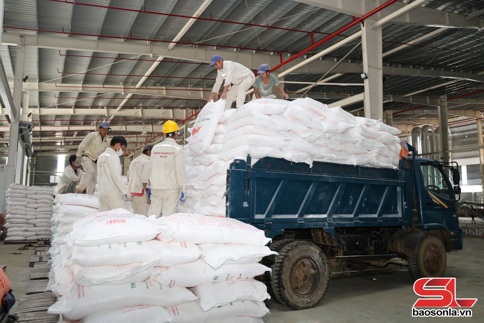 ការដឹកជញ្ជូនផលិតផលសម្រេចរបស់រោងចក្រផលិតម្សៅដំឡូងមី BHL Son La ។