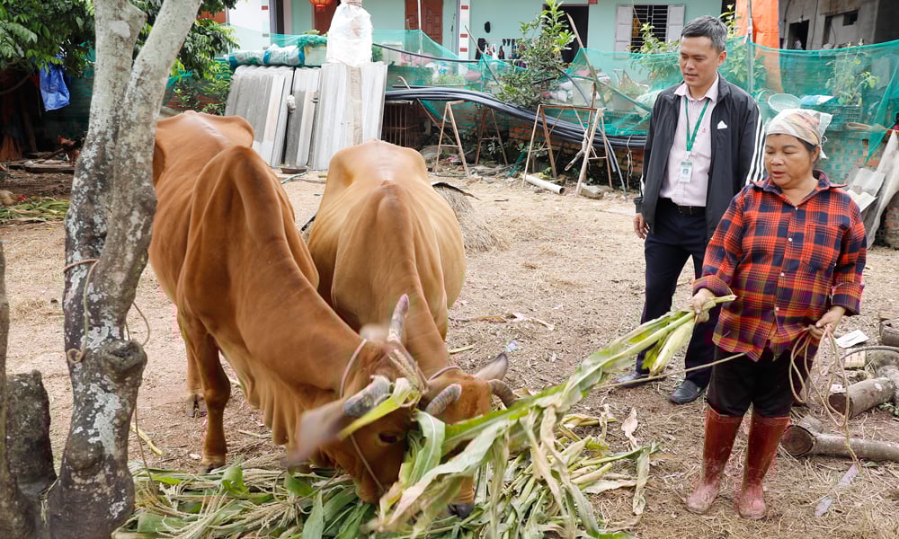 បុគ្គលិកនៃការិយាល័យប្រតិបត្តិការធនាគារគោលនយោបាយសង្គម Tan Yen បានទៅទស្សនាគំរូចិញ្ចឹមសត្វរបស់គ្រួសារលោកស្រី Nguyen Thi Nga ។ |