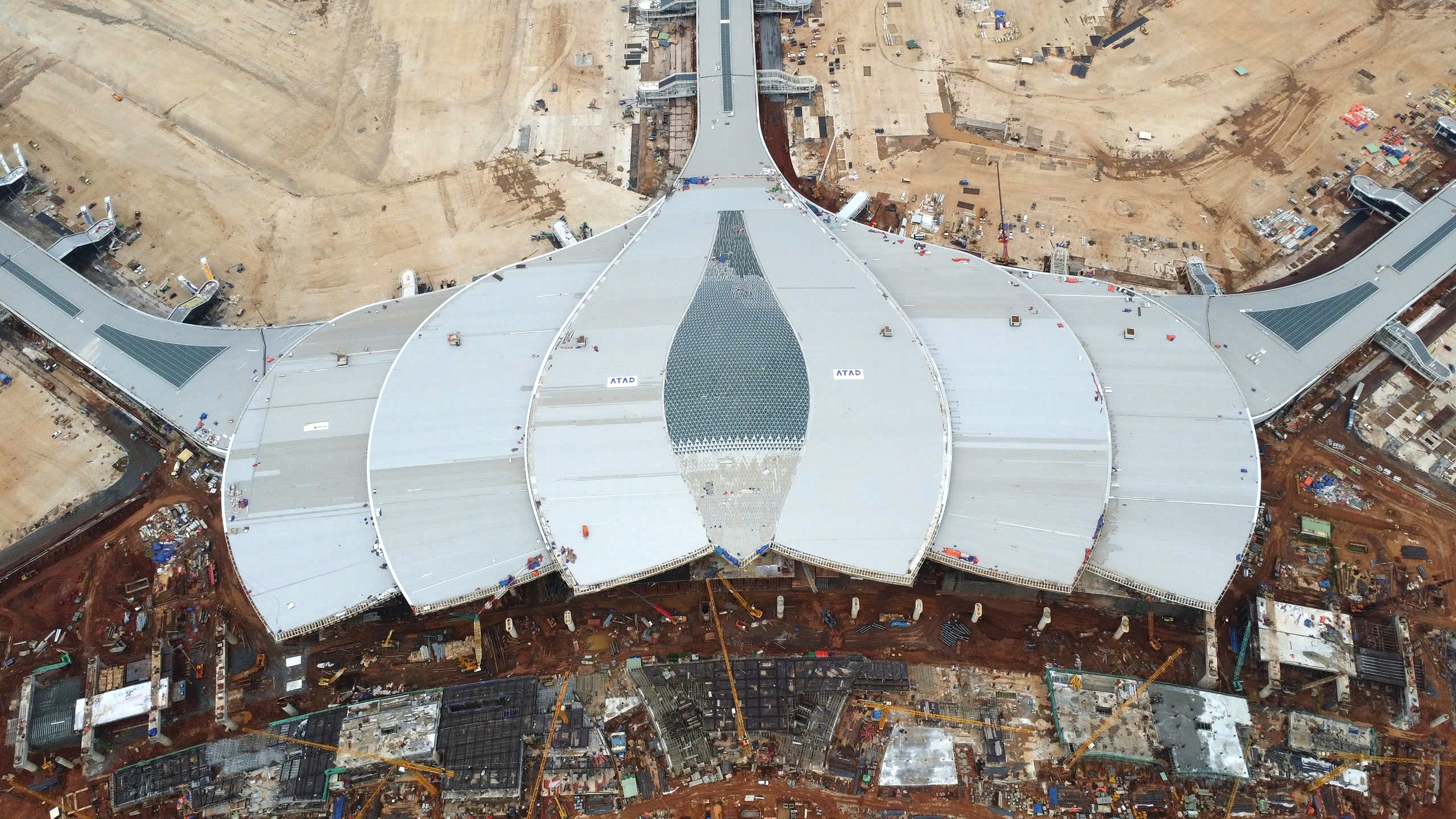 អគារស្ថានីយអ្នកដំណើរ ដែលមាននិមិត្តសញ្ញាផ្កាឈូករចនាបថ បានលេចចេញជារូបរាងរួចរាល់ហើយ ដើម្បីស្វាគមន៍ជើងហោះហើរលើកដំបូងរបស់ខ្លួន - រូបថត៖ A Loc