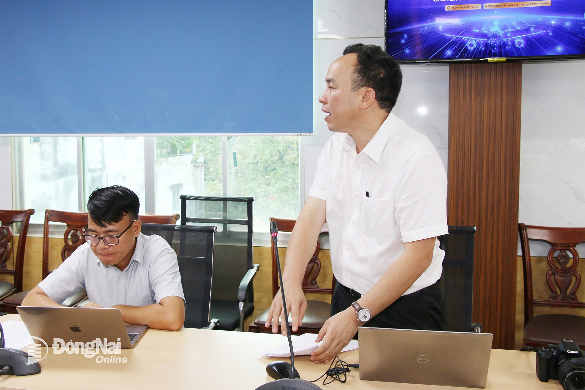 អនុប្រធានមន្ទីរវិទ្យាសាស្ត្រ និងបច្ចេកវិទ្យាខេត្ត Dong Nai លោក Nguyen Minh Quang បានឆ្លើយសំណួរមួយចំនួនរបស់អ្នកសារព័ត៌មាន។ រូបថត៖ Hai Quan |