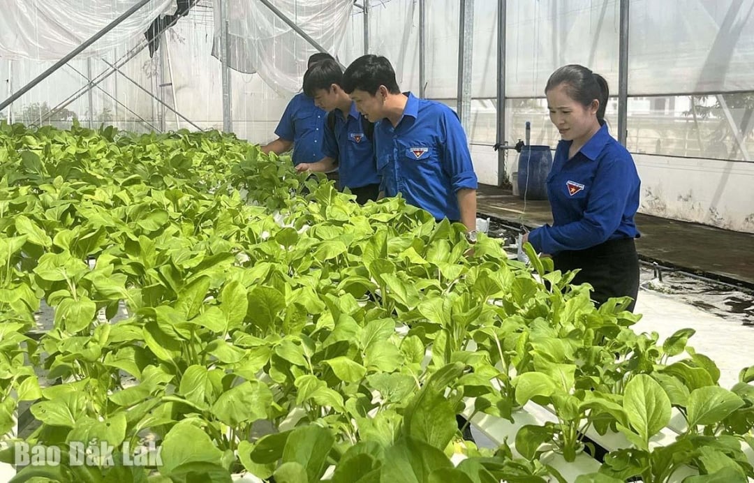 កសិកម្មបច្ចេកវិទ្យាខ្ពស់កំពុងបង្កើតកសិផលដែលមានទិន្នផល និងគុណភាពលេចធ្លោលើផ្ទៃដីតូចមួយ ក្នុងស្ថានភាពគ្រោះរាំងស្ងួត ដោយសារការប្រែប្រួលអាកាសធាតុ។ សមាជិកសម្ព័ន្ធយុវជនឃុំ Phu Hoa 2 ទស្សនាគំរូដាំបន្លែក្នុងផ្ទះកញ្ចក់នៅមជ្ឈមណ្ឌលស្រាវជ្រាវ និងអភិវឌ្ឍន៍កសិកម្មបច្ចេកវិទ្យាខ្ពស់ Phu Yenរូបថត៖ M. Duyen