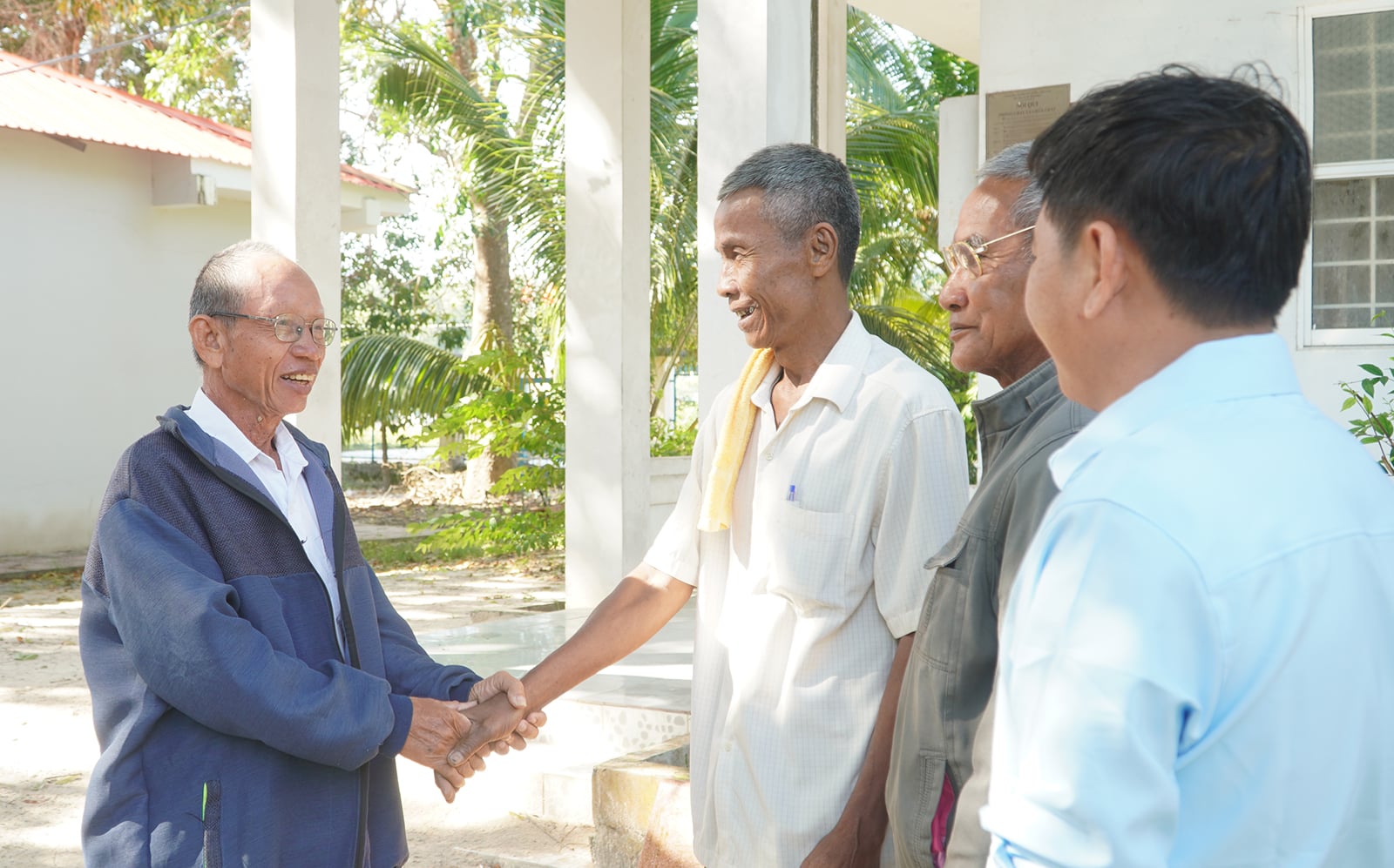 លោក Chau Sua (គម្របខាងឆ្វេង) បានប្រមូលផ្តុំប្រជាជនចូលរួមវិភាគទានថវិកា និងឧបត្ថម្ភថ្ងៃធ្វើការ ដើម្បីកសាងផ្លូវជនបទនៅភូមិ Phuoc Long។ រូបថត៖ DANH THANH