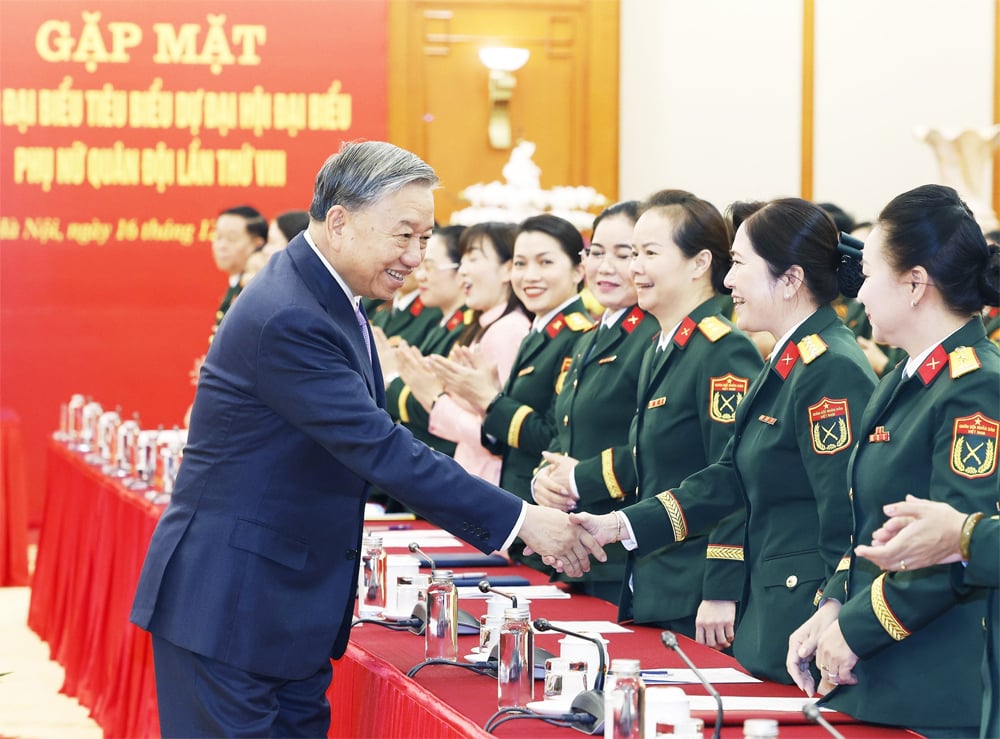 ក្នុងនាមថ្នាក់ដឹកនាំបក្ស និងរដ្ឋ អគ្គលេខាធិការបានកោតសរសើរយ៉ាងកក់ក្តៅចំពោះសមូហភាព និងសមាជិកយោធាស្ត្រី ជាពិសេសចំពោះការរួមចំណែកដ៏សំខាន់ និងមានអត្ថន័យរបស់ពួកគេចំពោះភារកិច្ចកសាងកងទ័ព ពង្រឹងការពារជាតិ និងការកសាង និងការពារមាតុភូមិសង្គមនិយមវៀតណាមយ៉ាងរឹងមាំ។