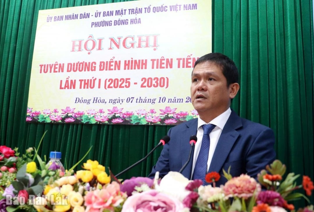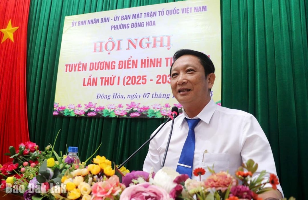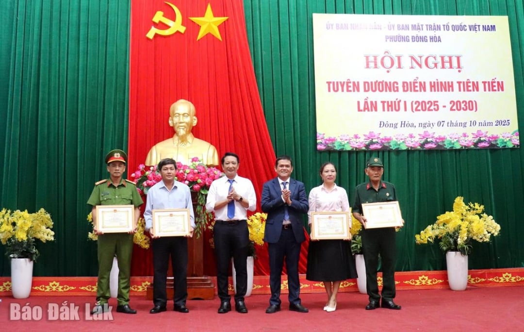 ក្នុងឱកាសនេះ គណៈកម្មាធិការប្រជាជនវួដ Dong Hoa បានលើកសរសើរសមូហភាពចំនួន ៤ និងបុគ្គលធម្មតា ជឿនលឿន និងឆ្នើមចំនួន ១០ ក្នុងចលនាត្រាប់តាមស្នេហាជាតិ ដំណាក់កាល ២០២០ - ២០២៥។