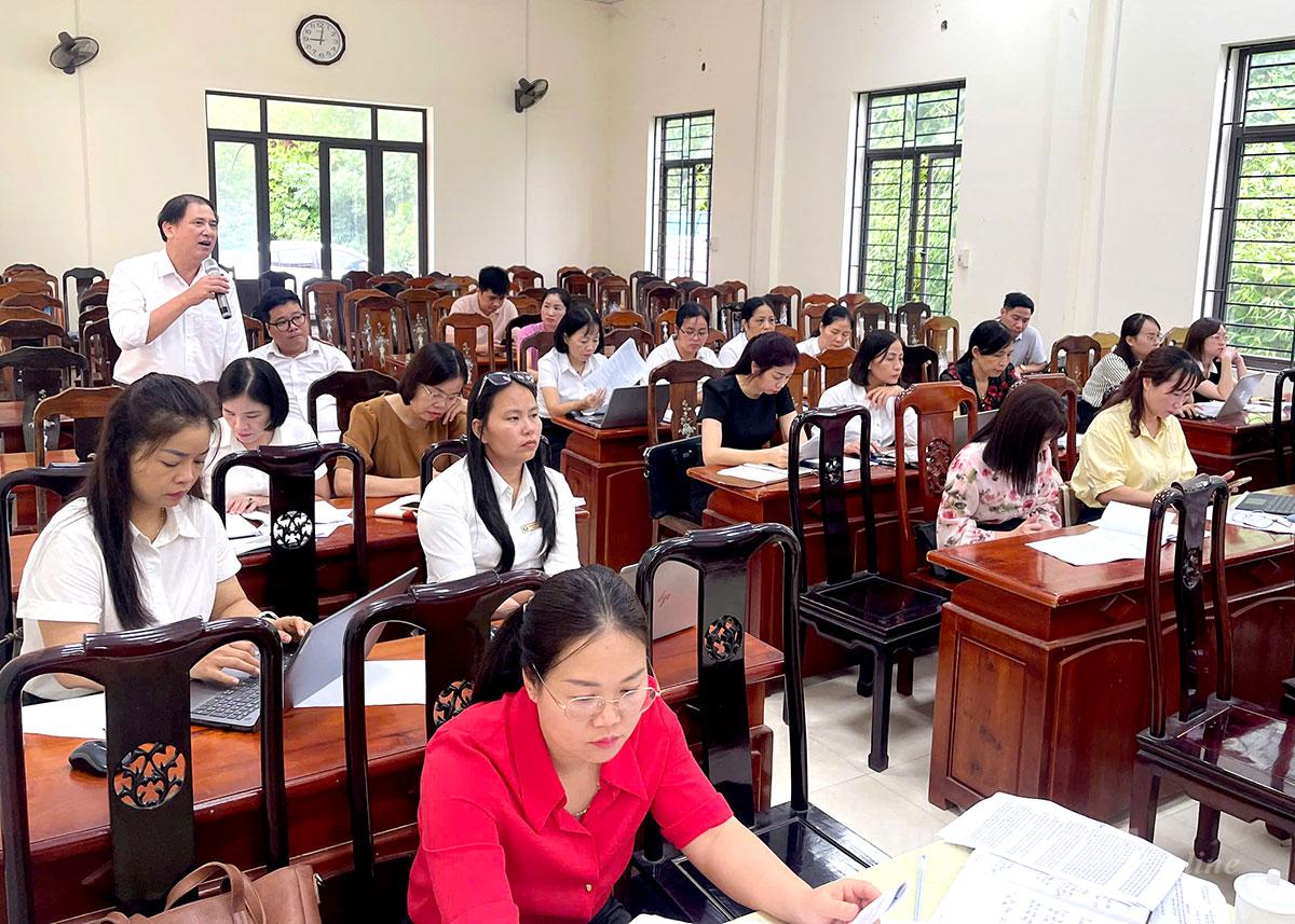ទិដ្ឋភាពទូទៅនៃកិច្ចប្រជុំការងាររវាងថ្នាក់ដឹកនាំវួដ Ha Giang 1 និងនាយកសាលាមត្តេយ្យ សាលាបឋមសិក្សា និងអនុវិទ្យាល័យក្នុងវួដ។