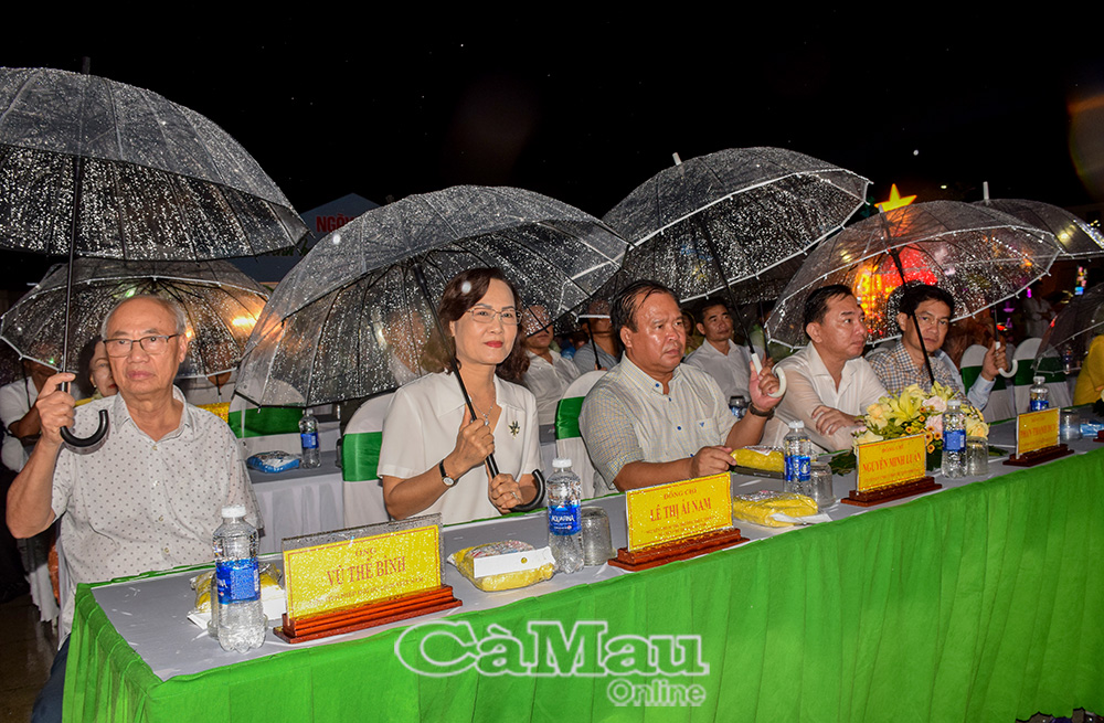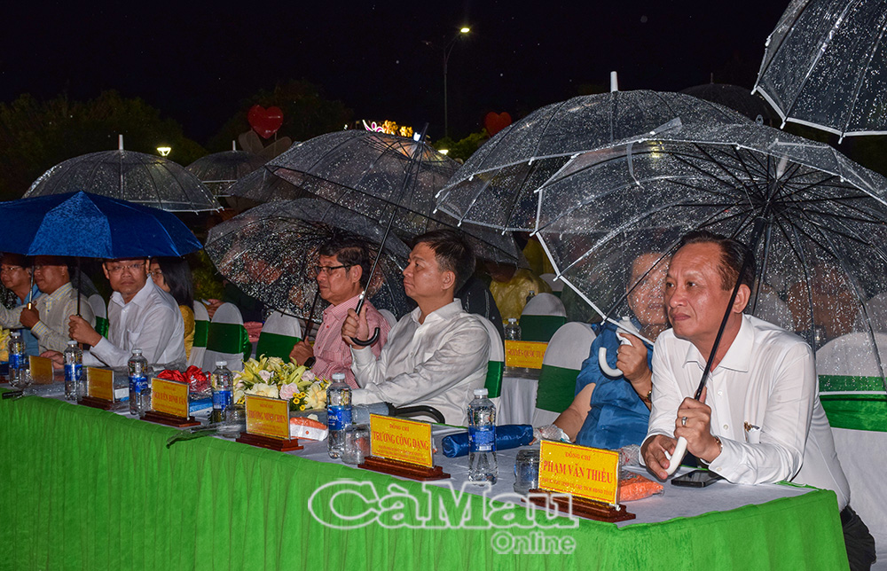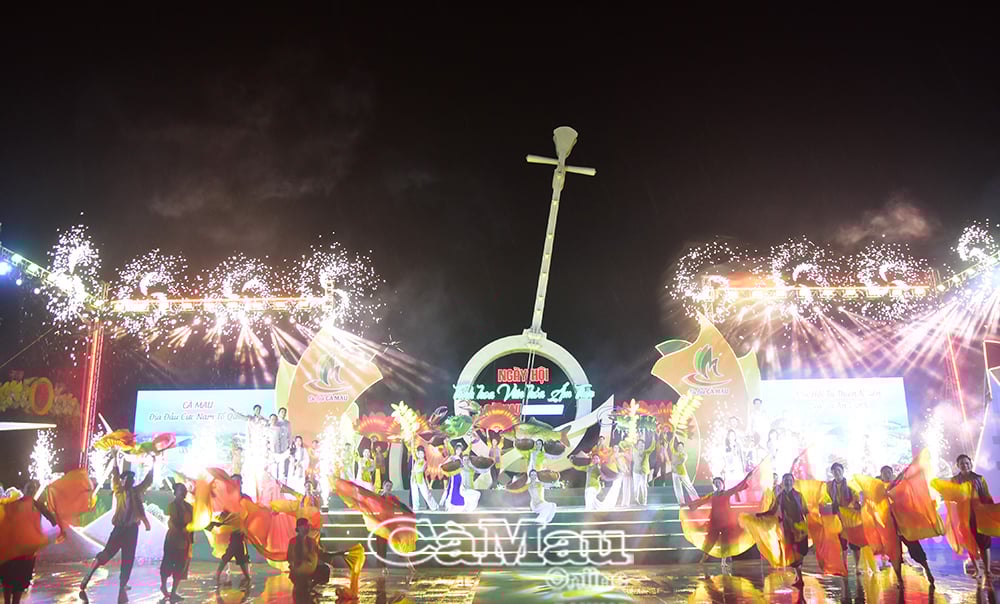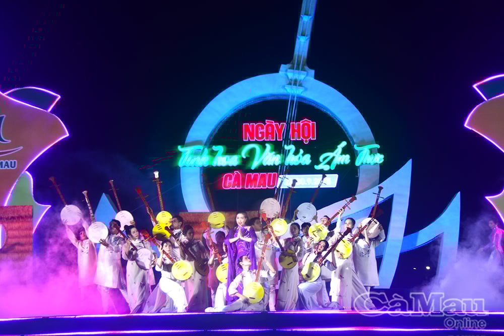 ភ្លាមៗបន្ទាប់ពីពិធីបើកកម្មវិធីសិល្បៈពិសេសមួយដែលមានប្រធានបទ "Ca Mau - ស្រឡាញ់ទឹកដី ស្រឡាញ់ប្រជាជន" បានប្រព្រឹត្តទៅ។ ការបើកគឺបទចម្រៀងអមតៈ Da Co Hoai Lang របស់តន្ត្រីករចុង កៅ វ៉ាន់ឡៅ ដែលជាស្នាដៃដែលចាត់ទុកថាជាប្រភពដើមនៃសិល្បៈល្ខោនវឹងកុល និង ក្វាងលឿង ដែលតែងតែបន្សល់ទុកនូវអារម្មណ៍ជាច្រើននៅក្នុងចិត្តទស្សនិកជន។ ការសម្តែងសិល្បៈបានបន្តបង្កើតឡើងវិញនូវសម្រស់ធម្មជាតិដ៏សម្បូរបែបនៃទឹកដីភាគខាងត្បូងនៃមាតុភូមិ ដែលសម្បូរទៅដោយផលិតផលដូចជា អង្ករ អំបិល ត្រី បង្គា រួមជាមួយនឹងទឹកចិត្តសប្បុរសធម៌របស់ប្រជាជនខេត្ត Ca Mau ដែលនាំឱ្យភ្ញៀវទេសចរណ៍មានអារម្មណ៍ស្និទ្ធស្នាល និងសន្តិភាព។