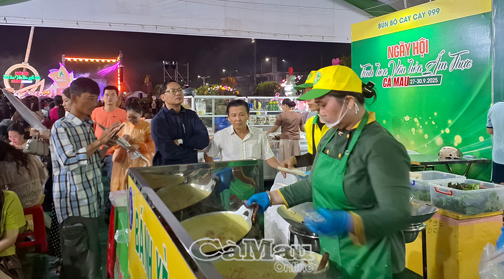 បន្ទាប់ពីពិធីបើក ថ្នាក់ដឹកនាំខេត្ត គណៈប្រតិភូ និងប្រជាពលរដ្ឋ និងភ្ញៀវទេសចរណ៍មួយចំនួនធំបានទស្សនា និងទទួលយកបទពិសោធន៍នៃវប្បធម៌ធ្វើម្ហូបរបស់ Ca Mau និងរីករាយជាមួយការសម្តែងធ្វើម្ហូបដោយមេចុងភៅល្បីៗ។